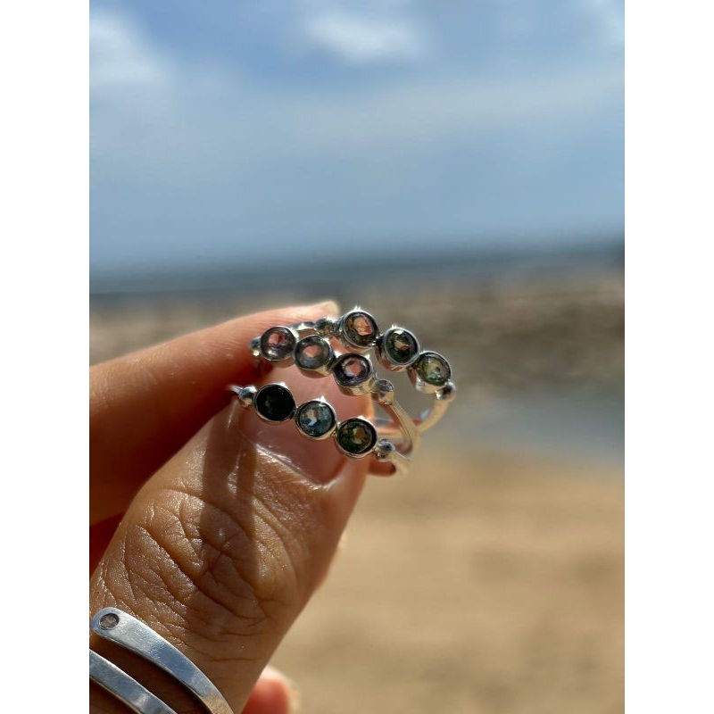 Cincin Perak Mungil | Cincin Rainbow Tourmaline | Perak 925 | Batu Alam Asli | Pendant | Necklace