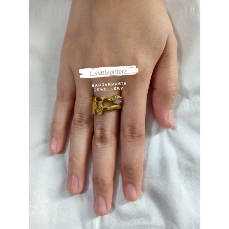 Cincin Selisih Permata Inisial "N" Lapis Emas 999 Banjar