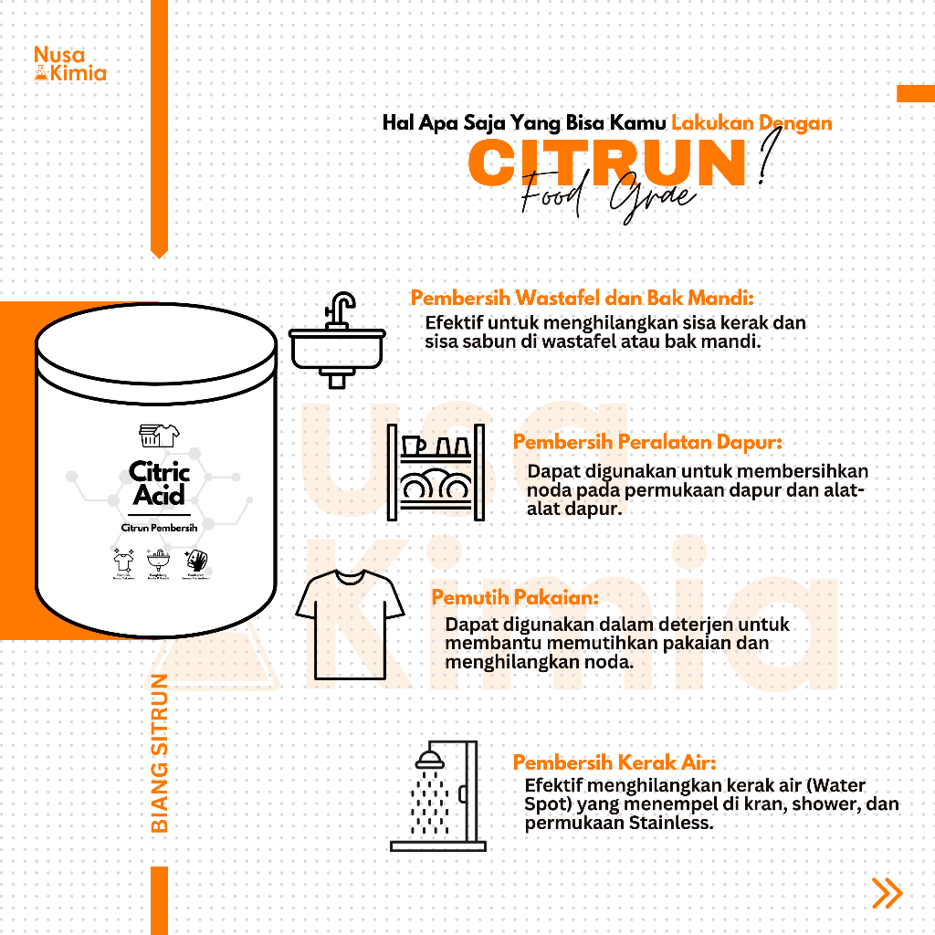 Citric 1 KG - Sitrun Pembersih Serbaguna, Pembersih Noda Pakaian, Noda Air & Kerak Permukaan