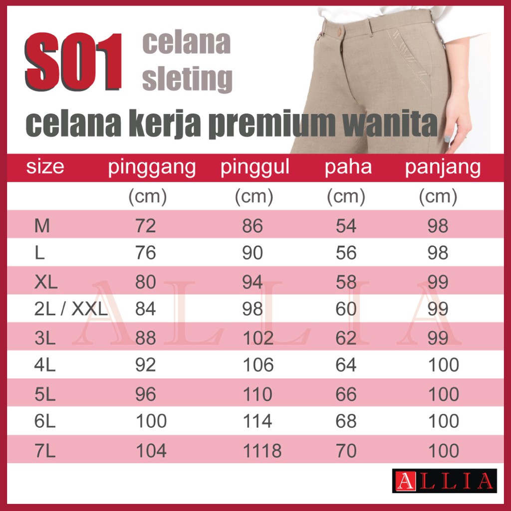 Celana Kerja Wanita ALLIA S01 M - 7L / celana bahan / celana kerja wanita kantor