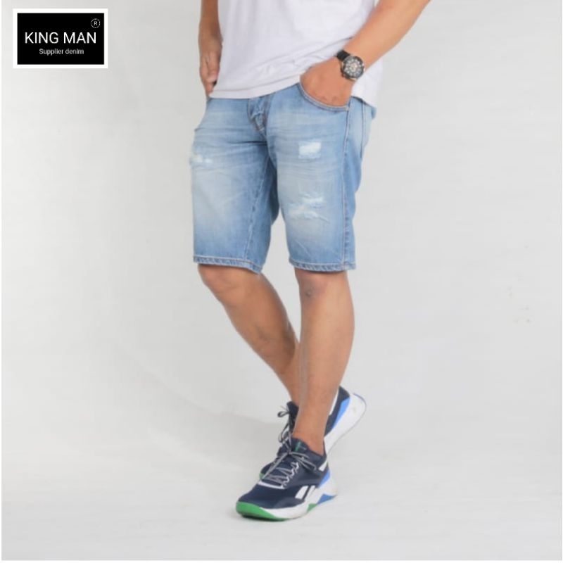KING MAN 86 Celana Jeans Pria Pendek Sobek Skinny Cowok