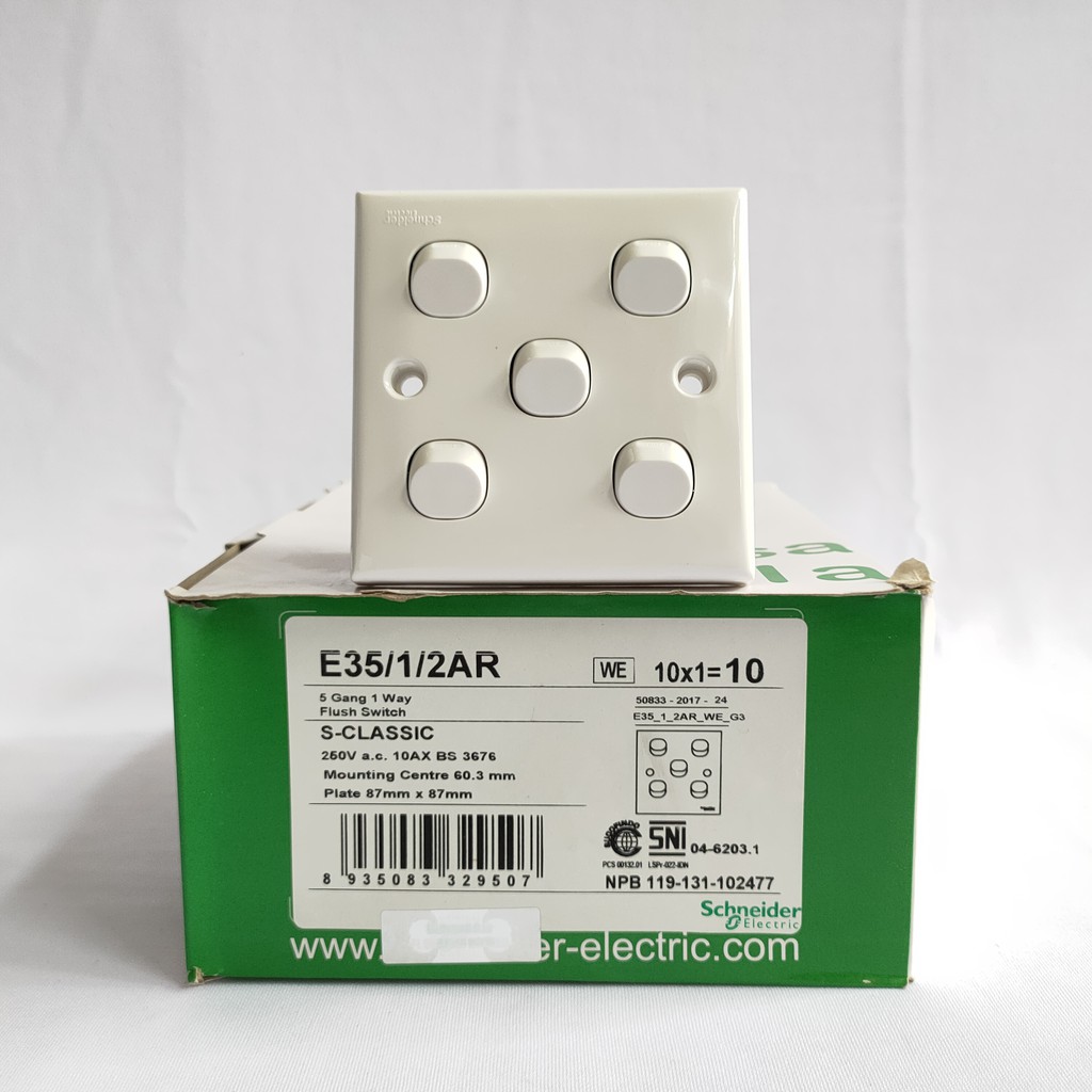 Classic Schneider Saklar 5 Gang 1 Way Flush Switch