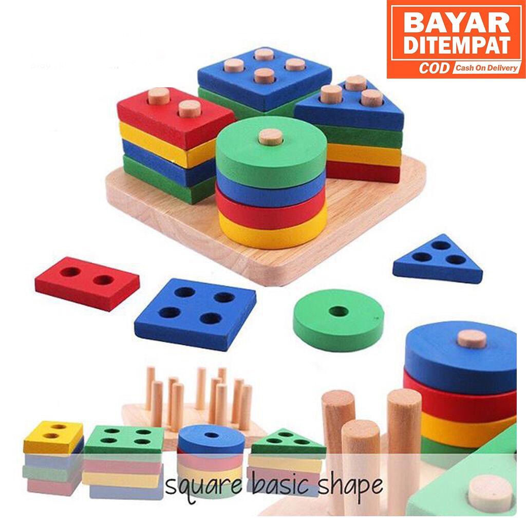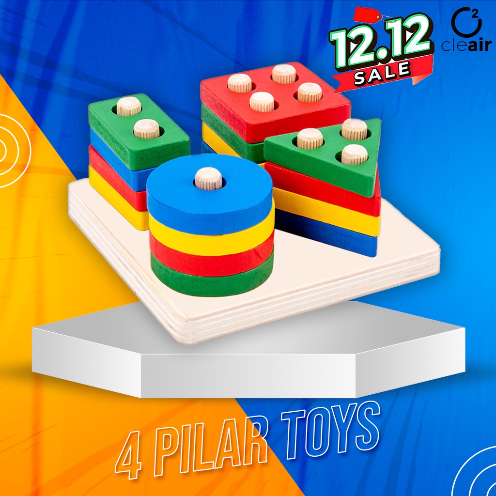 CleAir O2 - Mainan Puzzle 3D Anak GEO PILAR BASIC SHAPE/Wooden Pegboard/ square basic shape/ puzzle bentuk 3d/ pasak geometri/ puzzle mencocokan bentuk/ matching shape/
