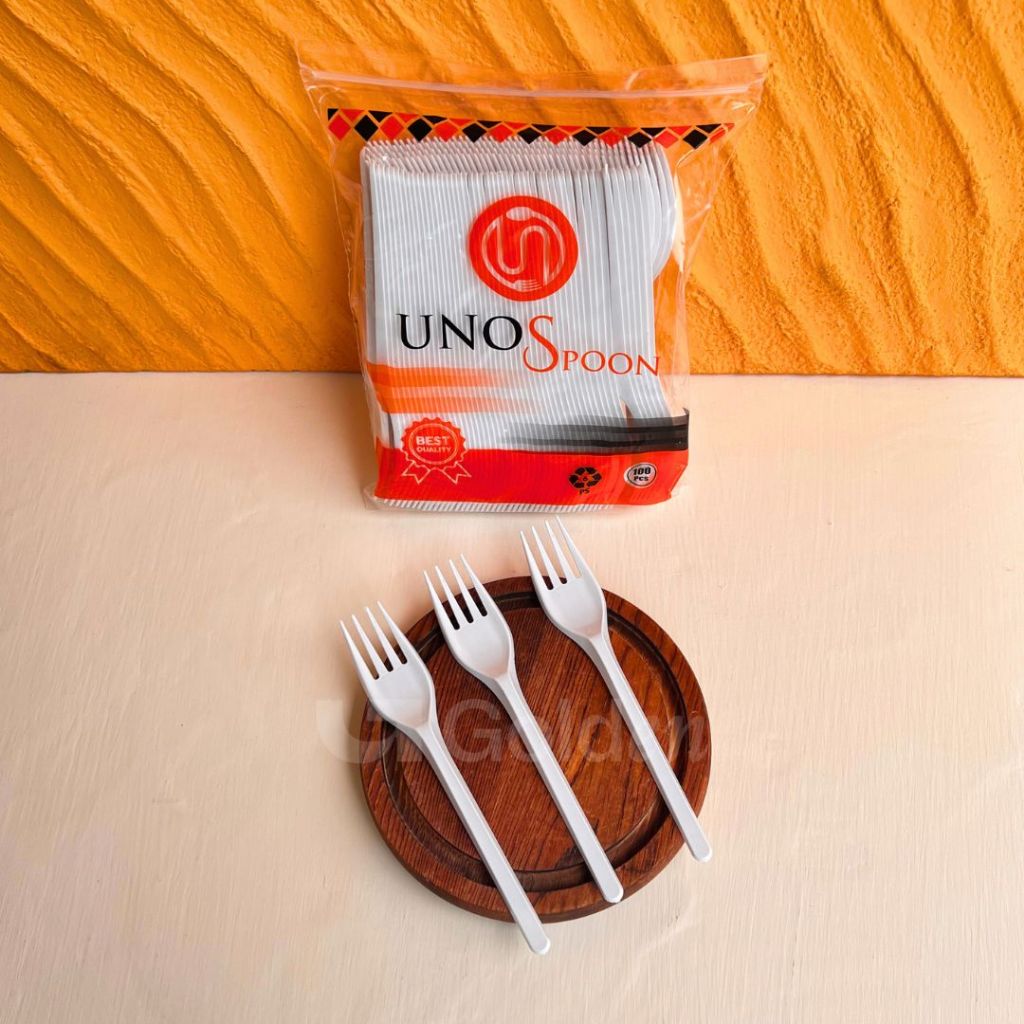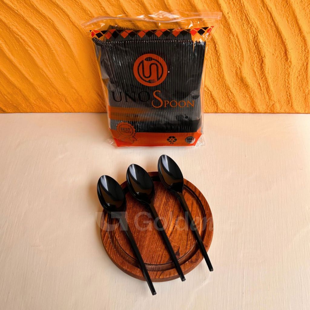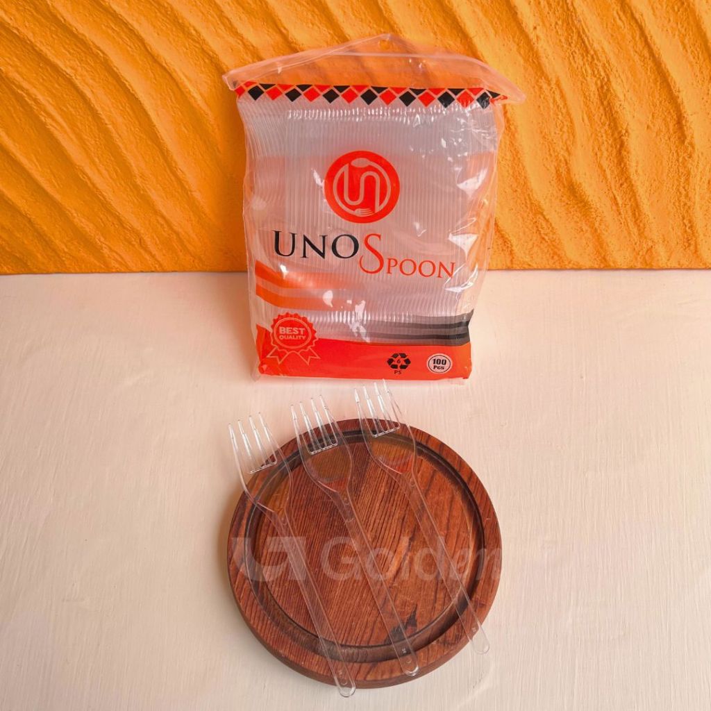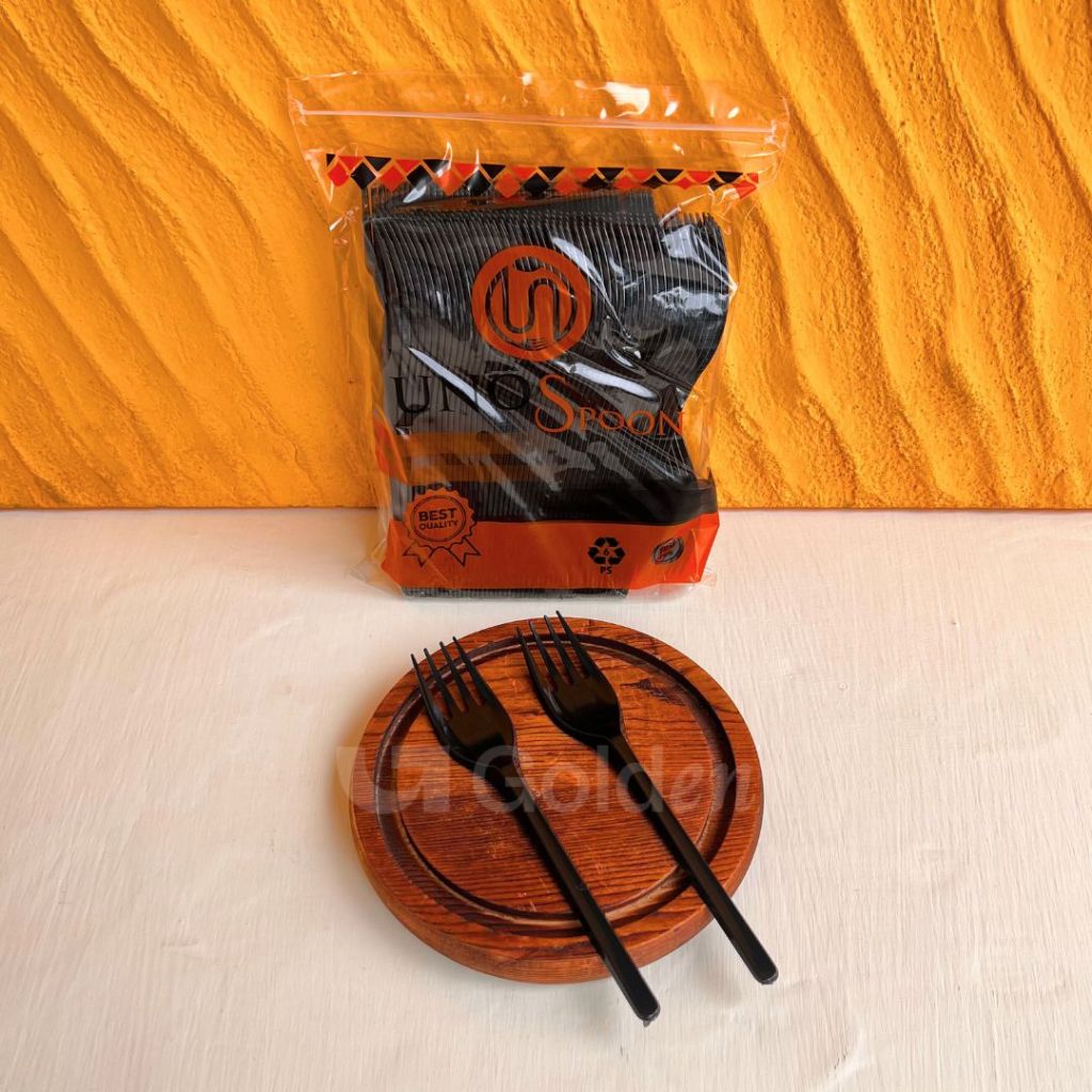 [Isi 100PCS] Alat Makan Plastik UNNO Hitam Putih Bening Sendok Garpu Kuat Kokoh Sekali Pakai Praktis