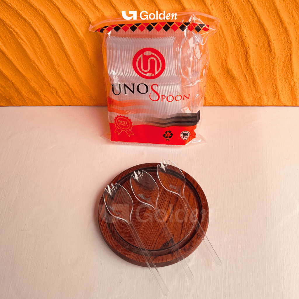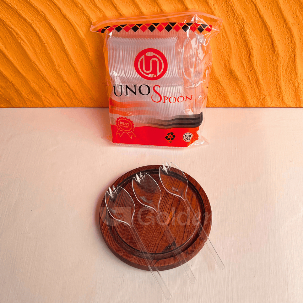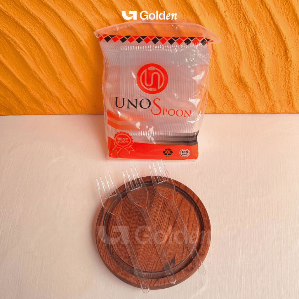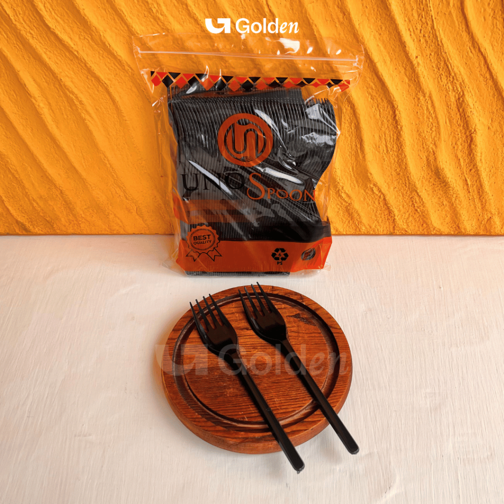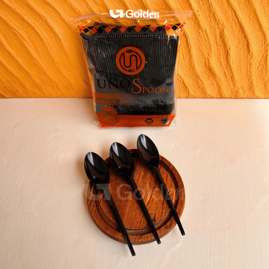 [Isi 100PCS] Alat Makan Plastik UNNO Hitam Putih Bening Sendok Garpu Kuat Kokoh Sekali Pakai Praktis