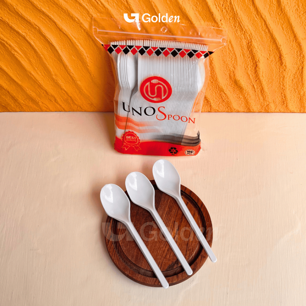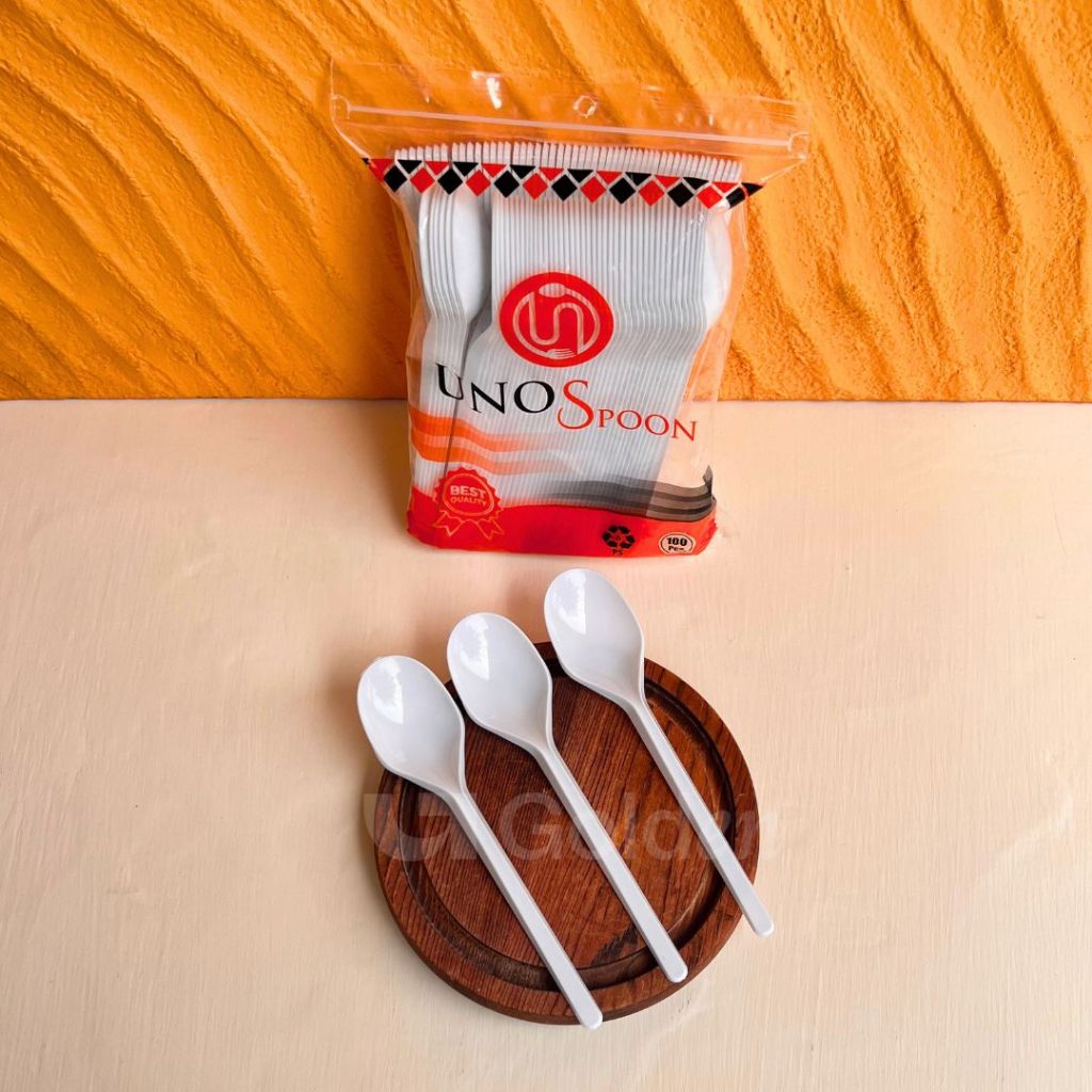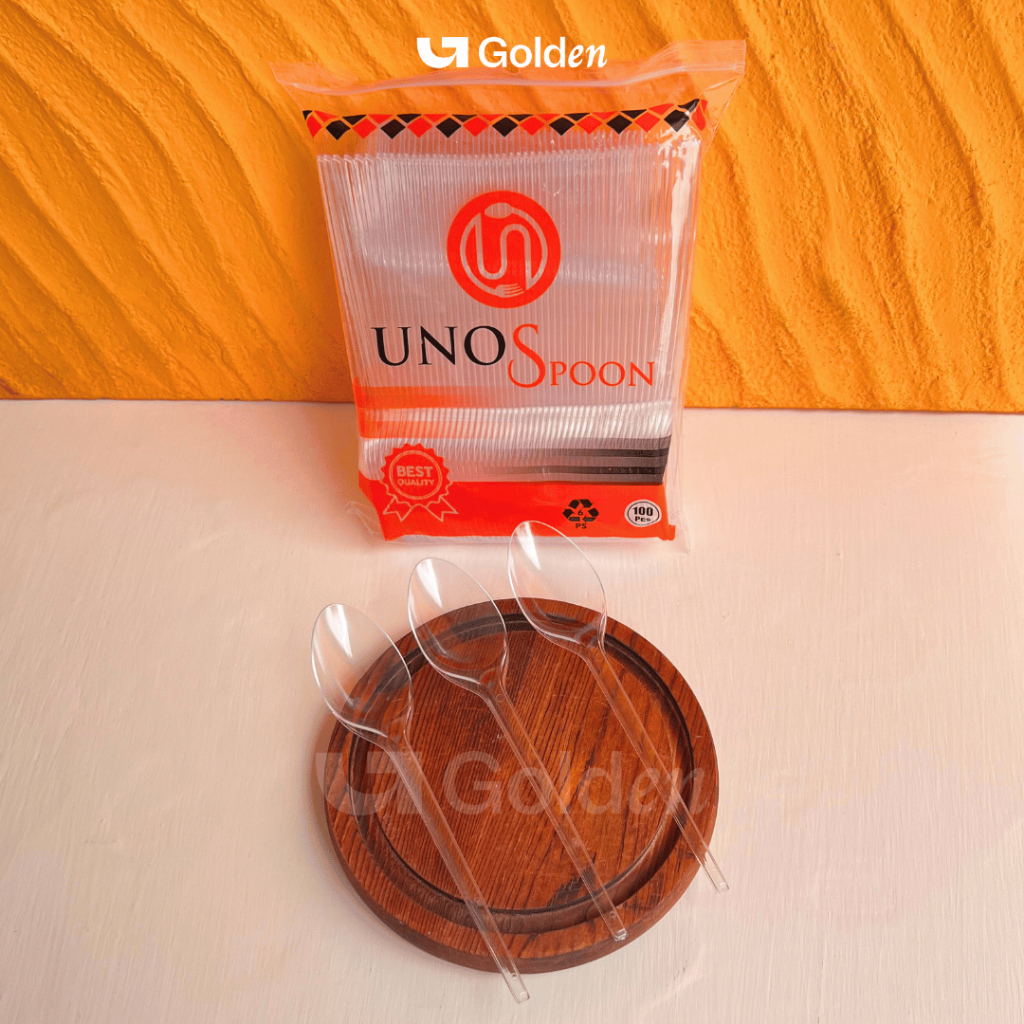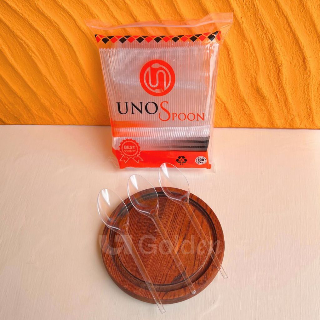 [Isi 100PCS] Alat Makan Plastik UNNO Hitam Putih Bening Sendok Garpu Kuat Kokoh Sekali Pakai Praktis