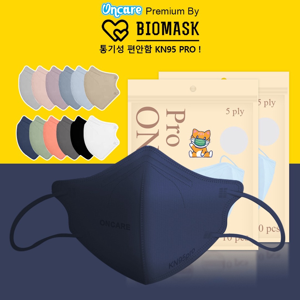 BIOMASK Official x Oncare - Masker KN95 Pro 5Ply isi 10 Pcs Colorful PREMIUM SERIES - N95 Import Mask 5 Ply Face Mask Tebal Promo Flash Sale Murah Hitam Putih Abu Pink Biru Original Korea Mask KPOP Mask CLEARANCE SALE