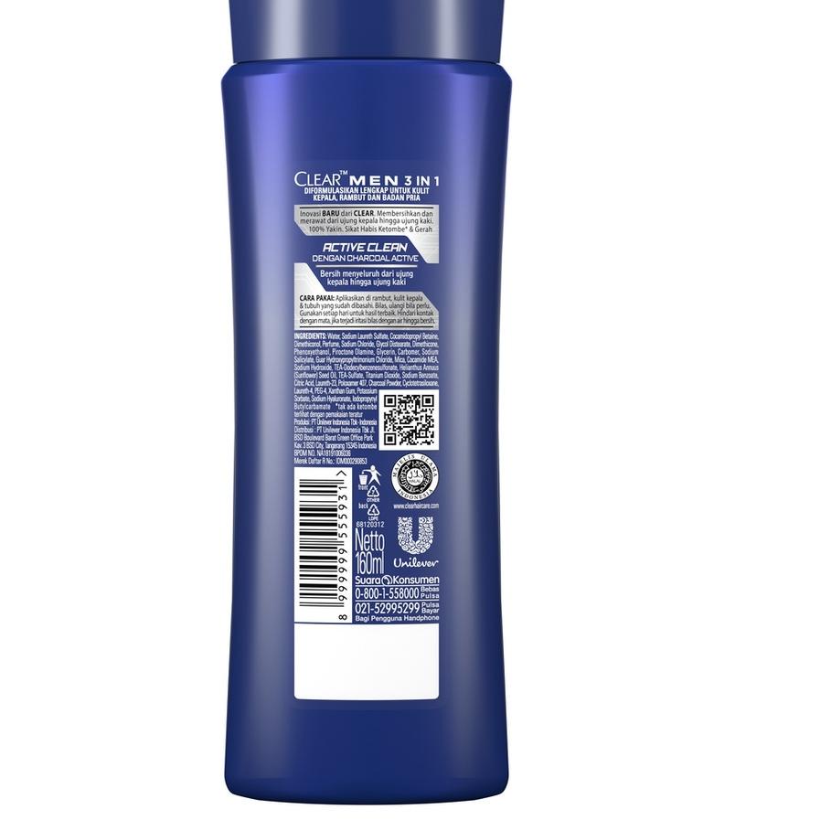 Clear Men 3-In-1 Shampo Active Clean Bottle 160ml