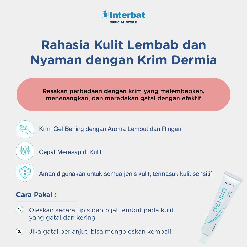 Dermia Krim 15 gr - Melembabkan Kulit Kering dan Meredakan Gatal
