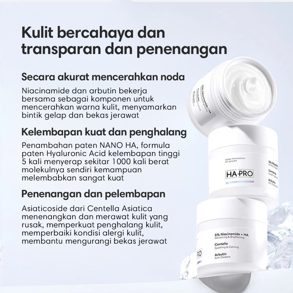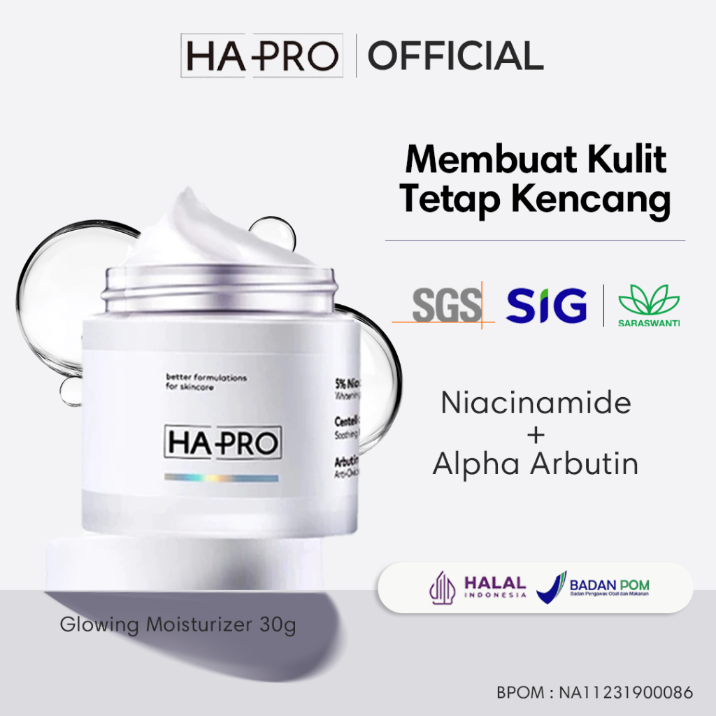 [HAPRO] HA PRO Glowing Moisturizer Niacinamide & Alpha Arbutin Whitening Cream 30gr Hyaluronic Acid Hydrating Brightening Moisturizer Gel Soothing Calming Face Moisturizer Pelembab Wajah Krim Pencerah Wajah Day & Night Cream SGS Tested