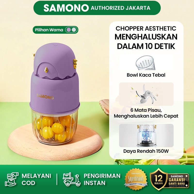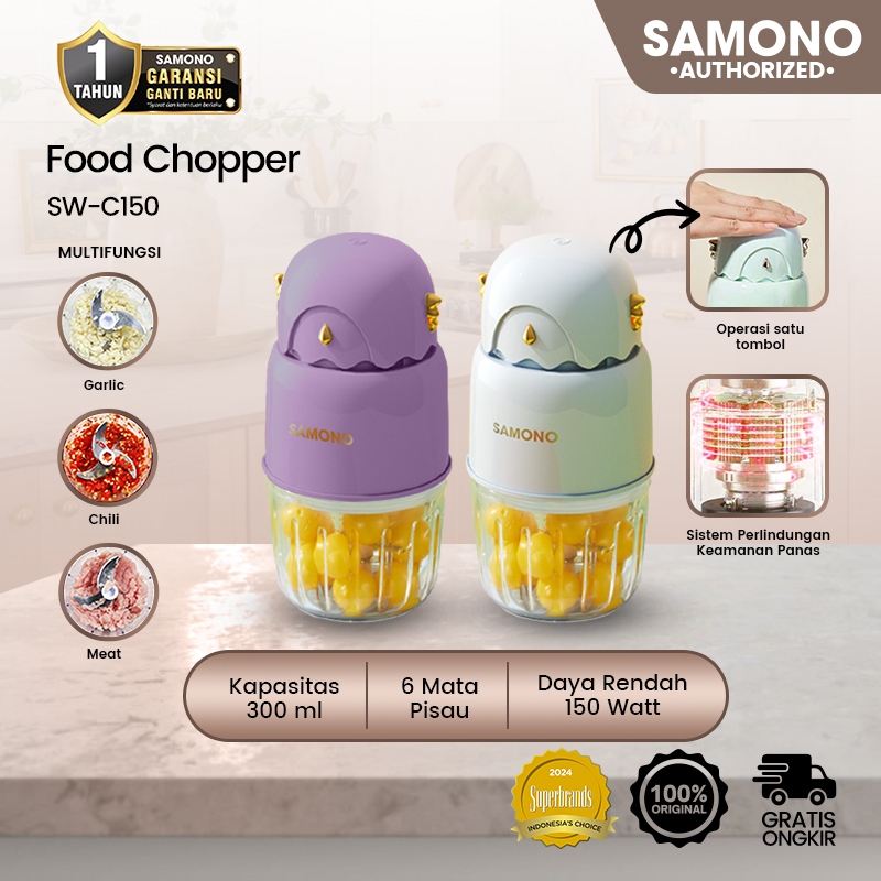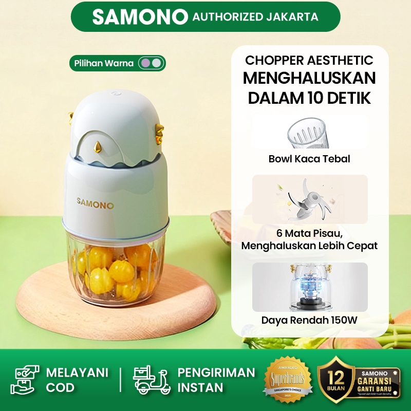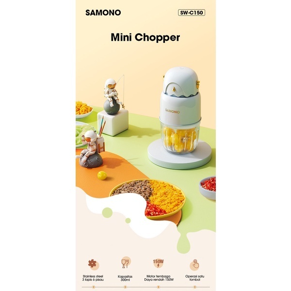 Samono 150W Food Chopper Mini Chopper Multifungsi Mpasi 300ML Blender Portable Stainless Steel Anti Karat SW-C150