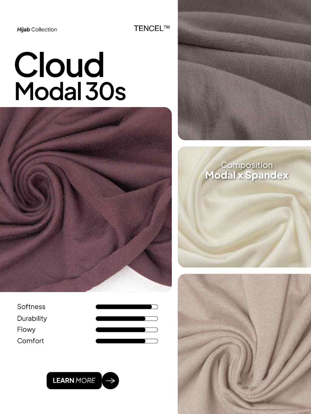 Cloud Modal 30s by SJA Textile - Kain TENCEL™ Luxury Modal 30s / Kain TENCEL™ Kiloan Premium Luxury Bahan Tencel Kain Modal Adem Breathable Hijab Tencel Premium Strechy | 1 klik = 0,5 kg