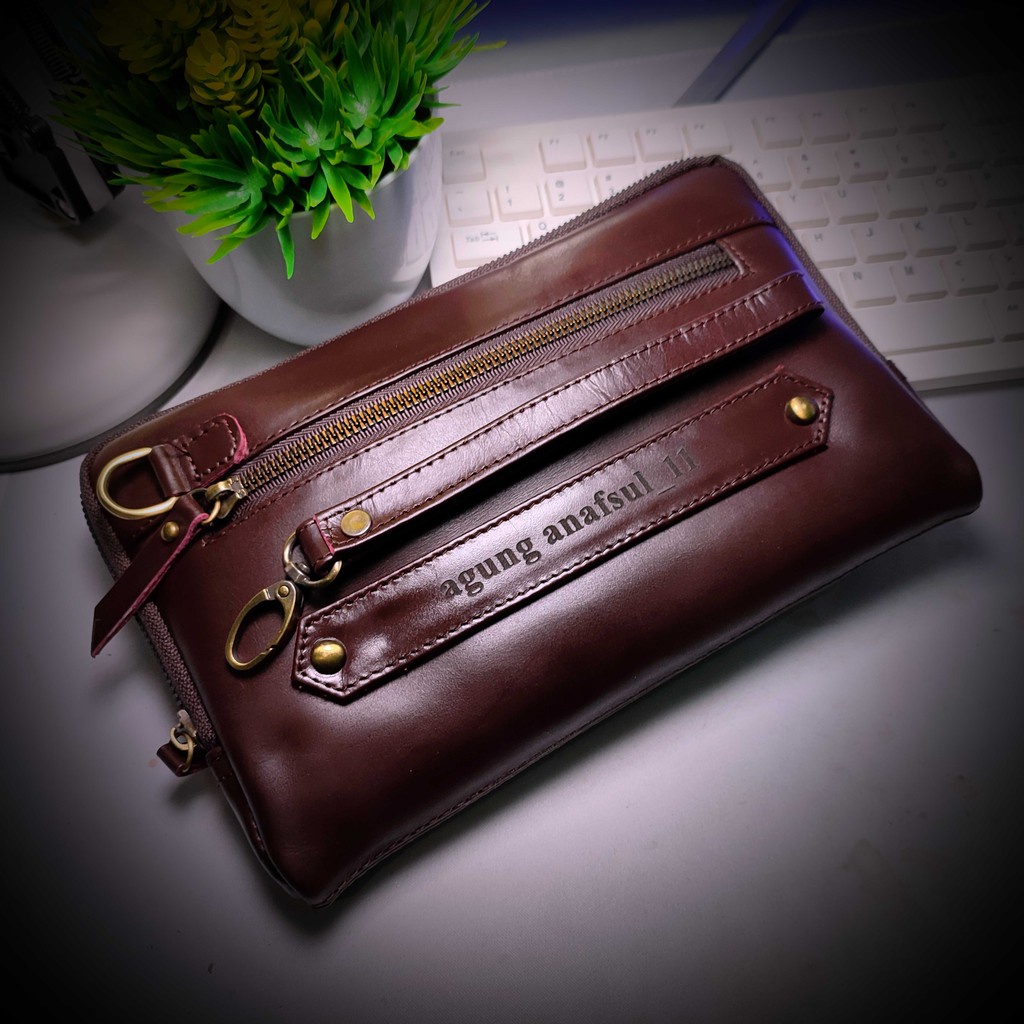 Clutch Bag Pria Handbag Pria Kulit Sapi Asli Kasual Modern AR IndonesianLeather - Tas Tangan Pria Kulit Terbaru - Pouch brown balack