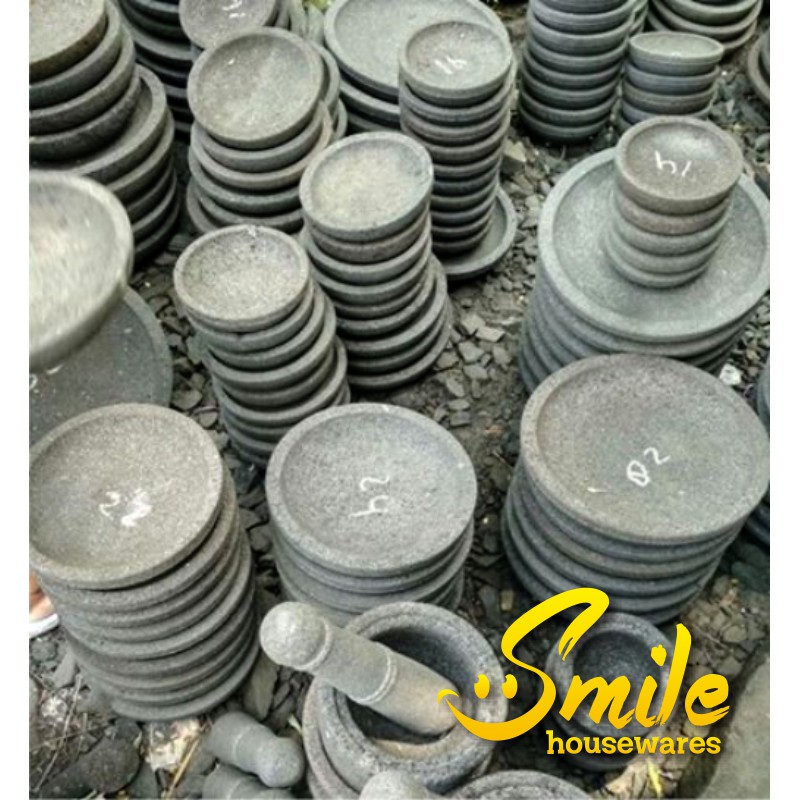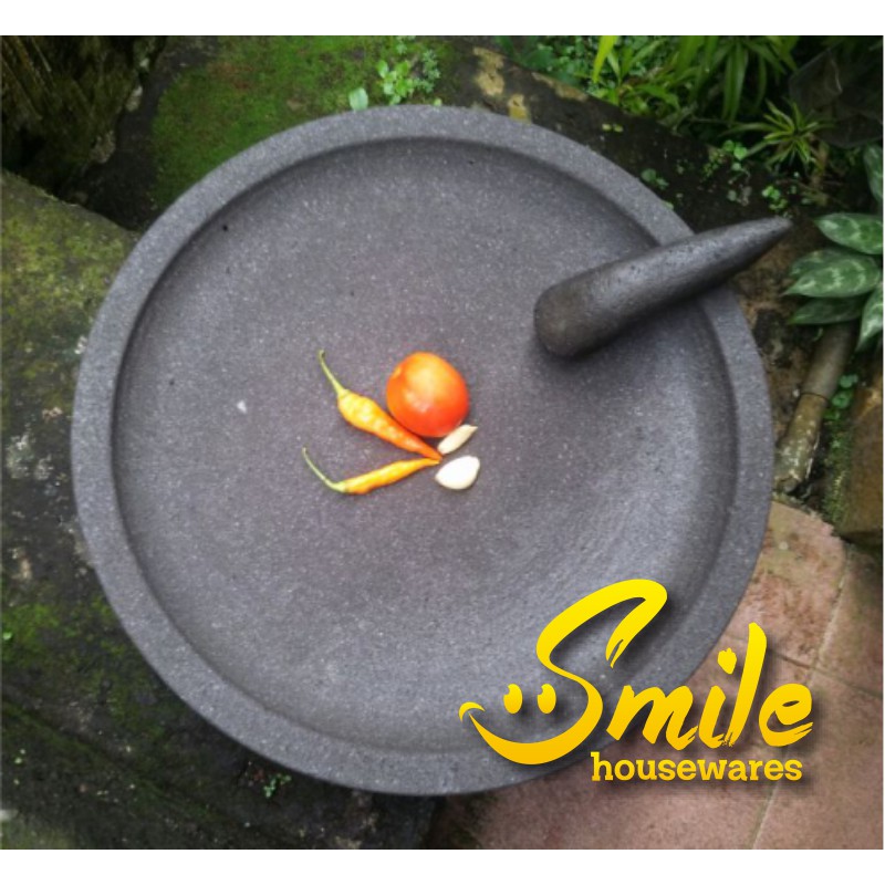 Cobek Bulat Batu Asli 16cm & Ulekan (+Packing kayu)