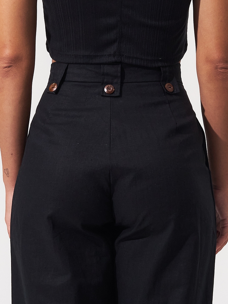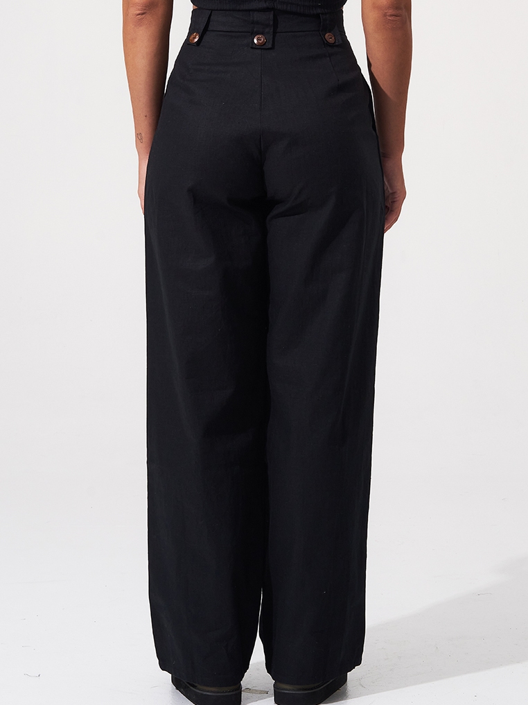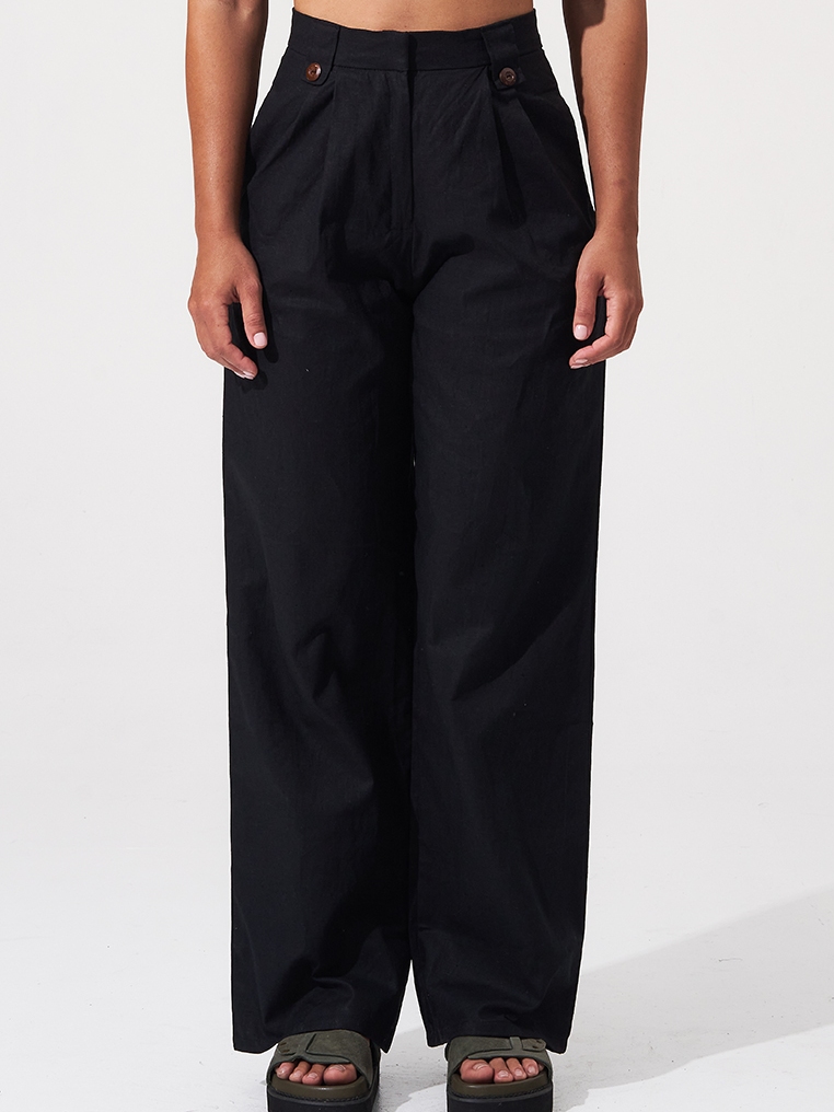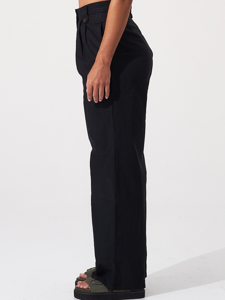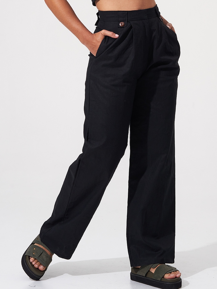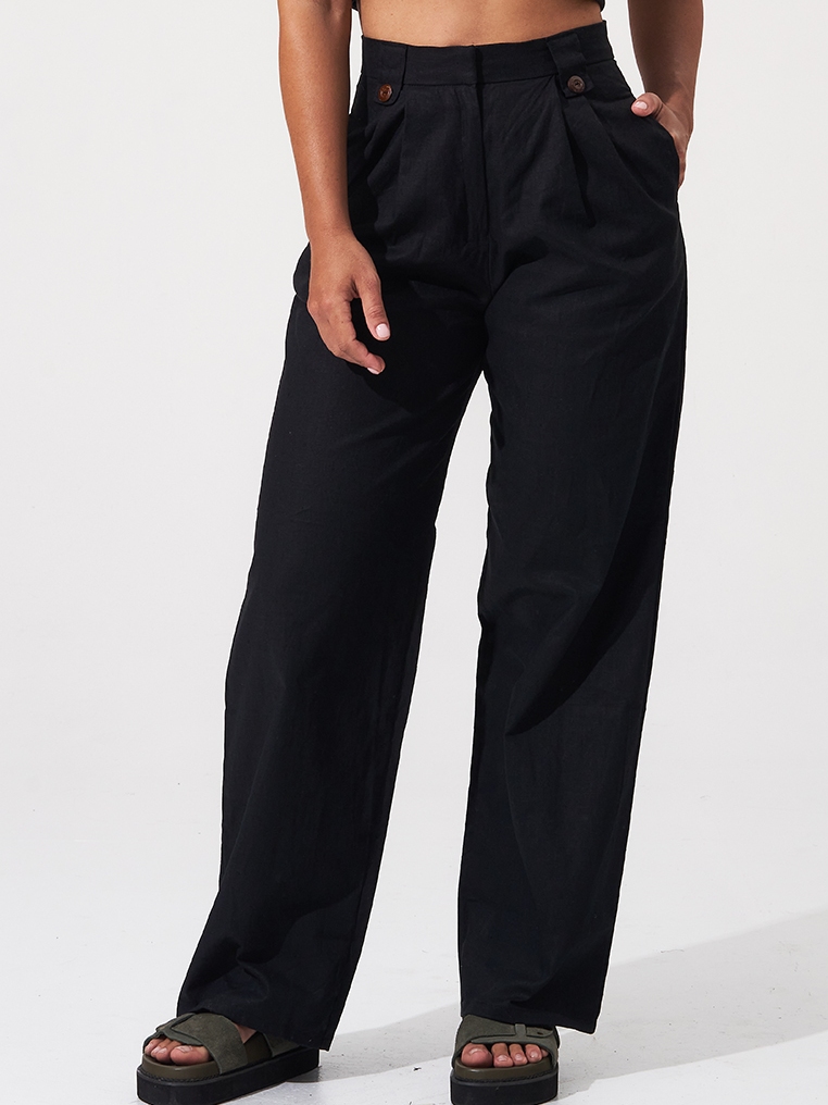 Coconut Linen Long Pants - Black