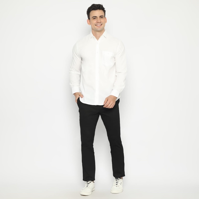 Code Male - Warner Kemeja Pria Panjang Putih Basic Slimfit