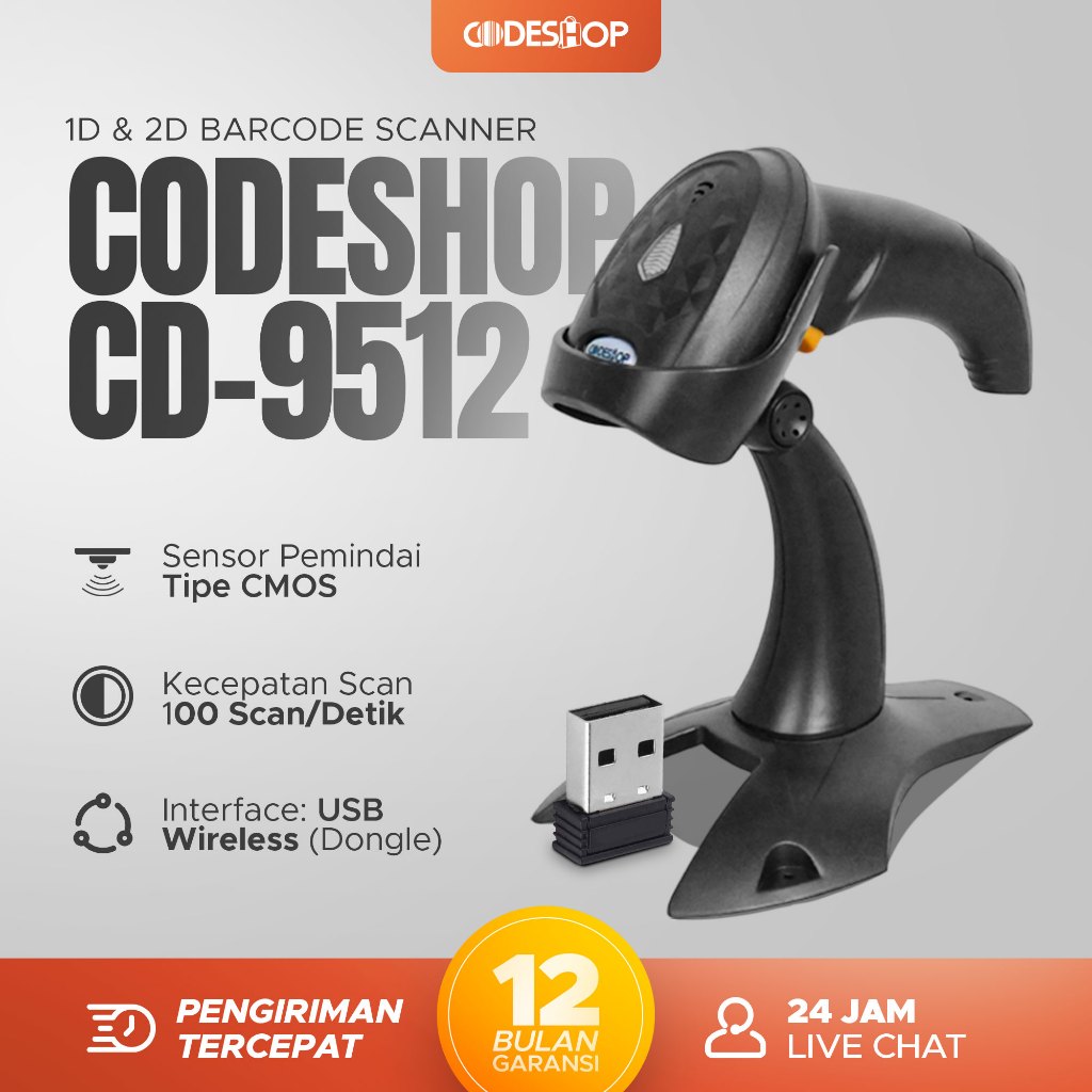 Codeshop CD-9512 Scanner Barcode Wireless Scan 2D 1D QR Code Imager CD9512 USB Dongle Plus Stand