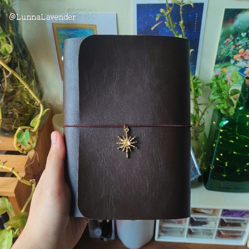 Coffee Brown Pocket Traveler's Journal with Leather Insert and Charm Pendant A6