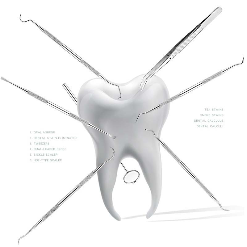 Set alat membersihkan gigi lengkap 7pcs peralatan Dokter Gigi Carbon steel tidak berkarat