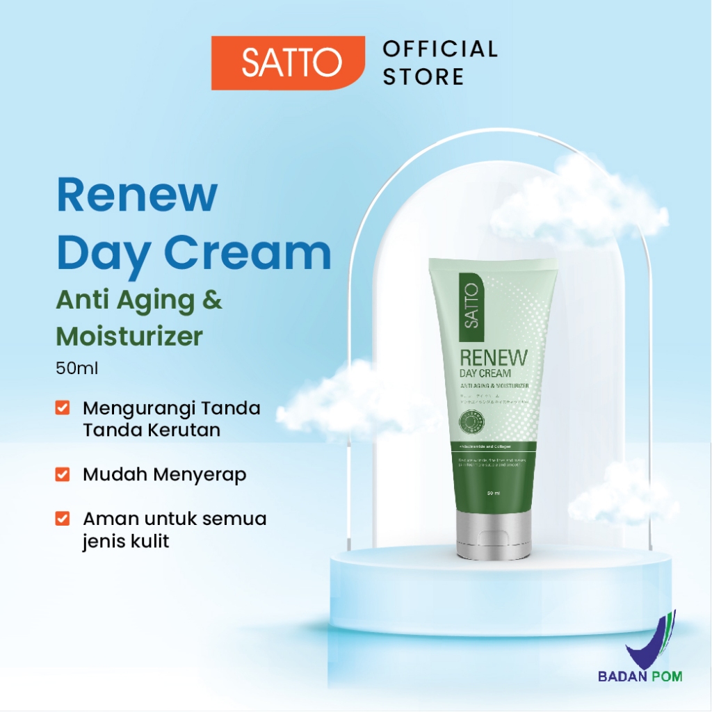 Satto Renew Day Cream 50g – Anti Aging, Moisturizer Wajah, Melembabkan, Mengencangkan Kulit & Anti Kerutan