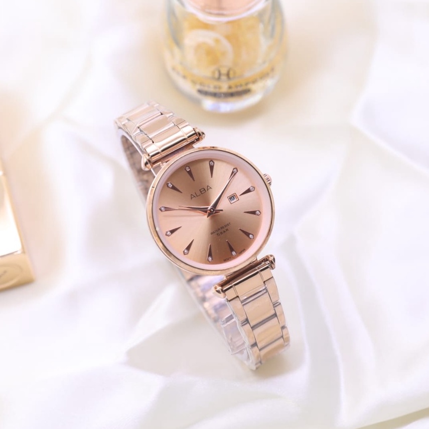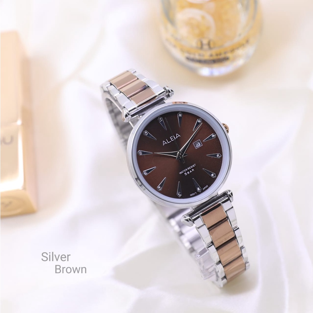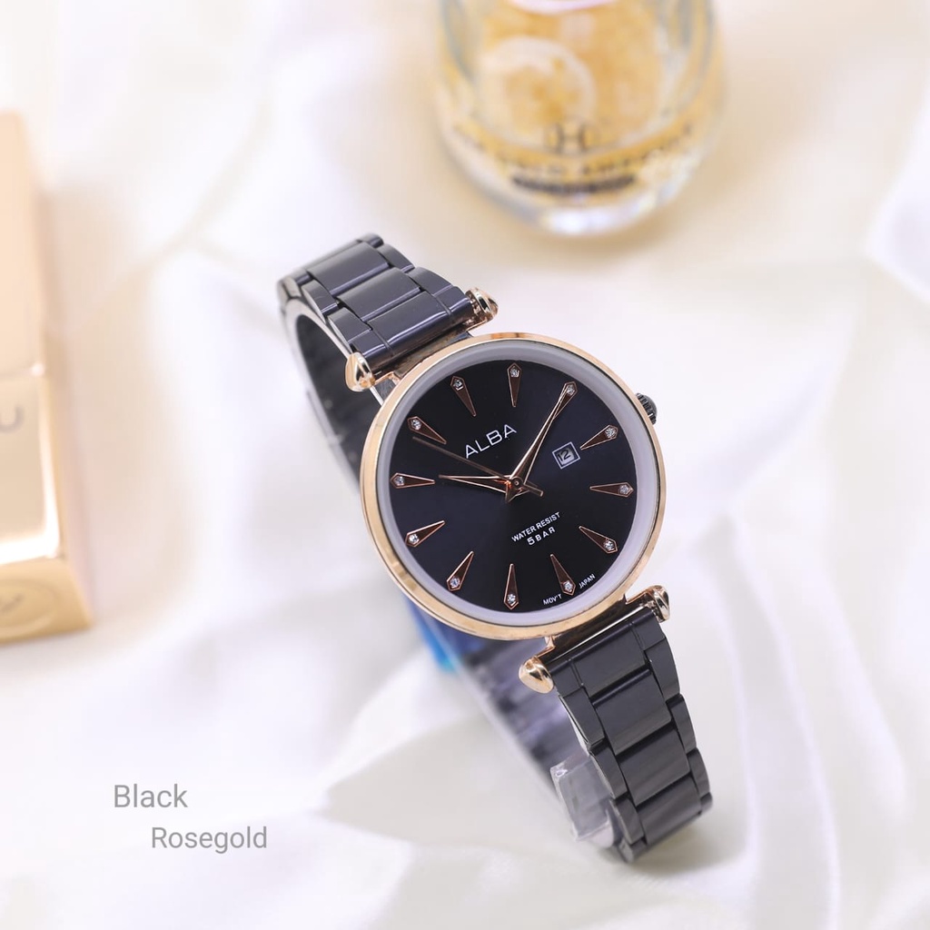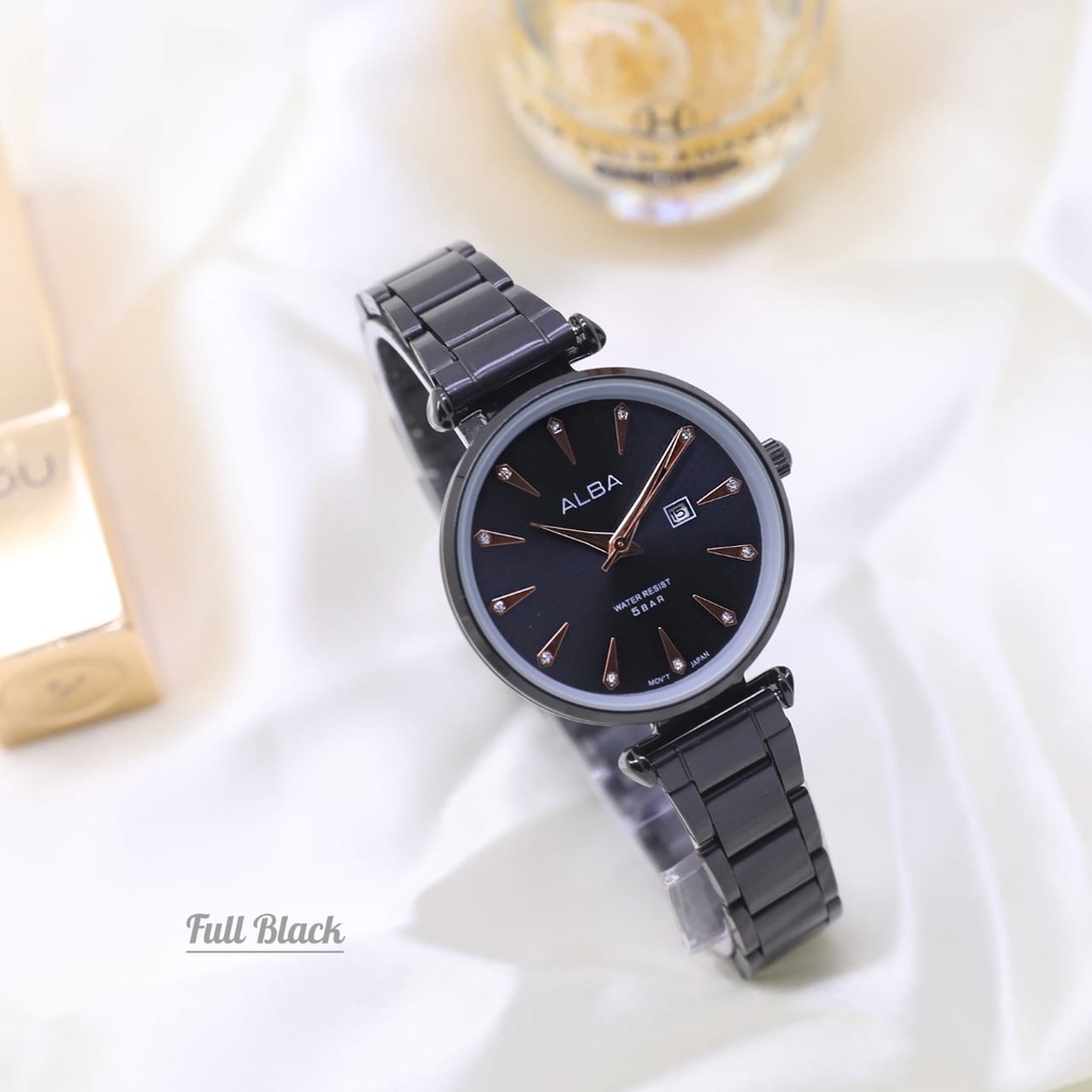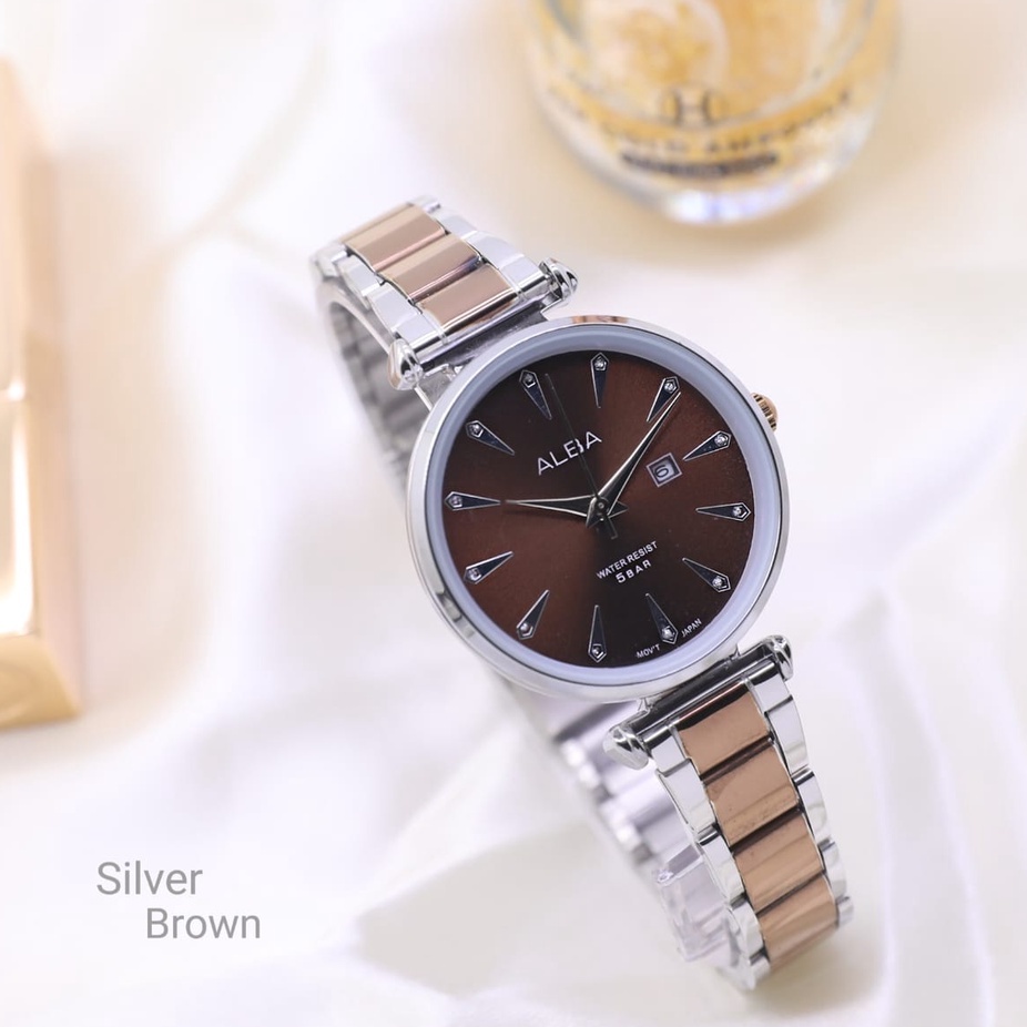 {COD✔️} NEW PREMIUM ! Jam Tangan Wanita Elegan ALBA Analog Strap Rantai - Diameter 3.2cm - Tanggal Aktif - Jam Tangan Cewek Simple Kekinian !! HUx LS