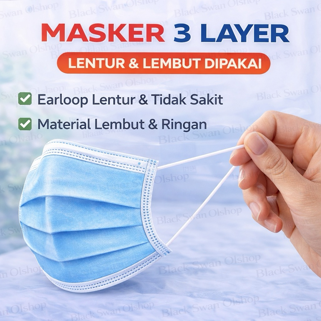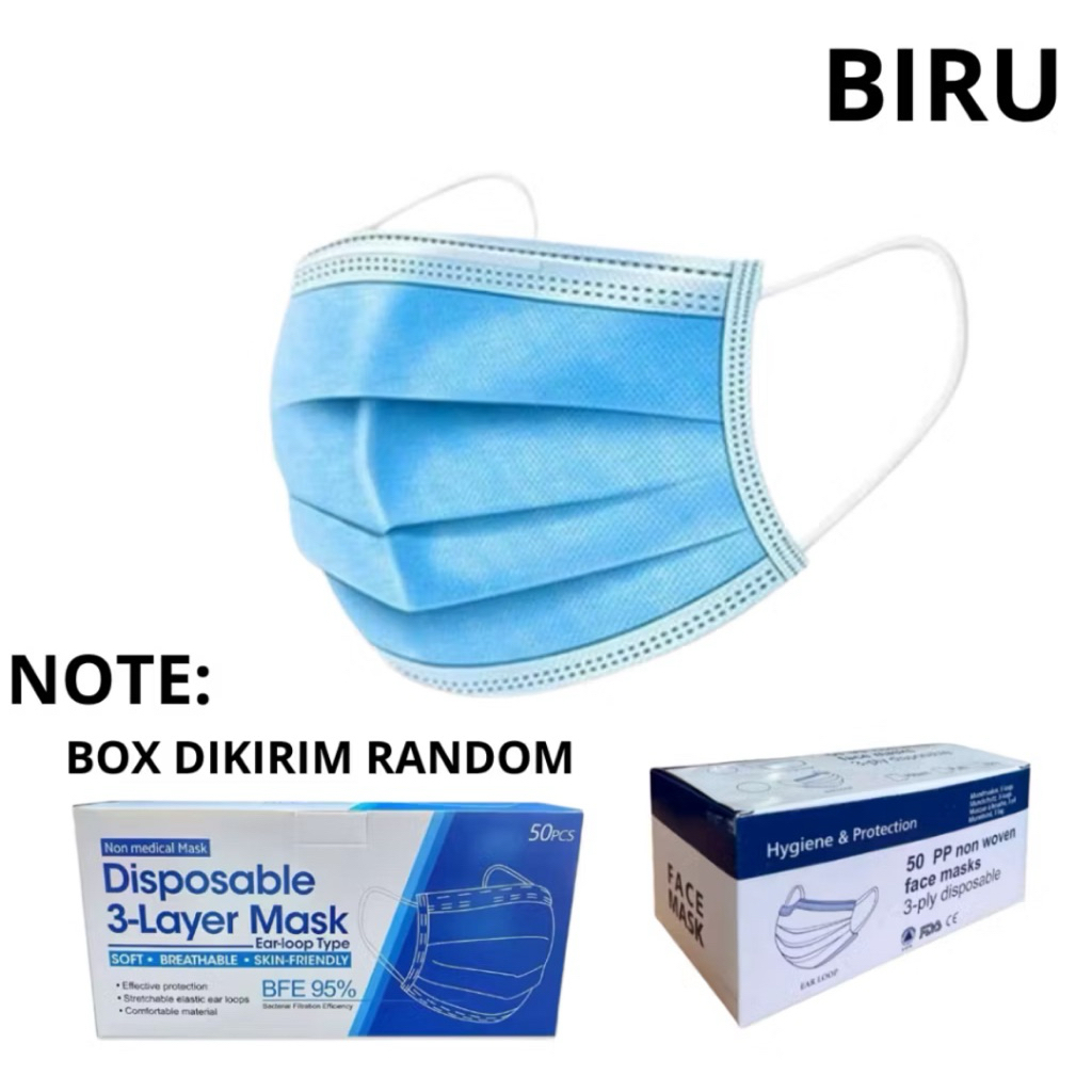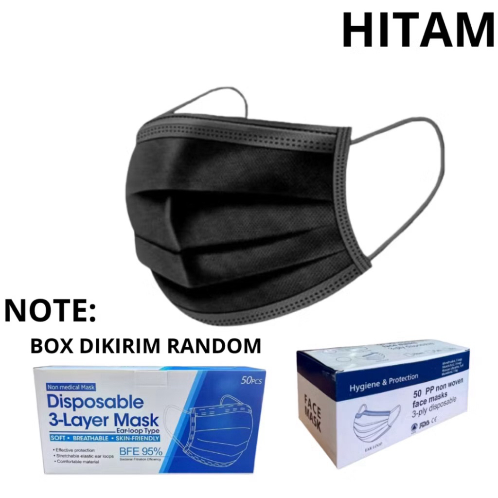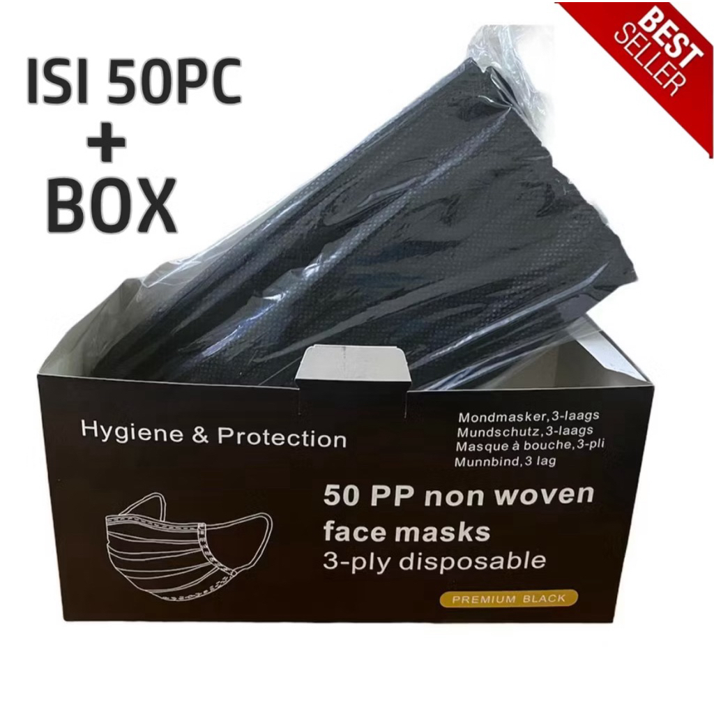 Masker 3 Ply isi 50 pcs Warna Biru/Hitam Dewasa Earloop