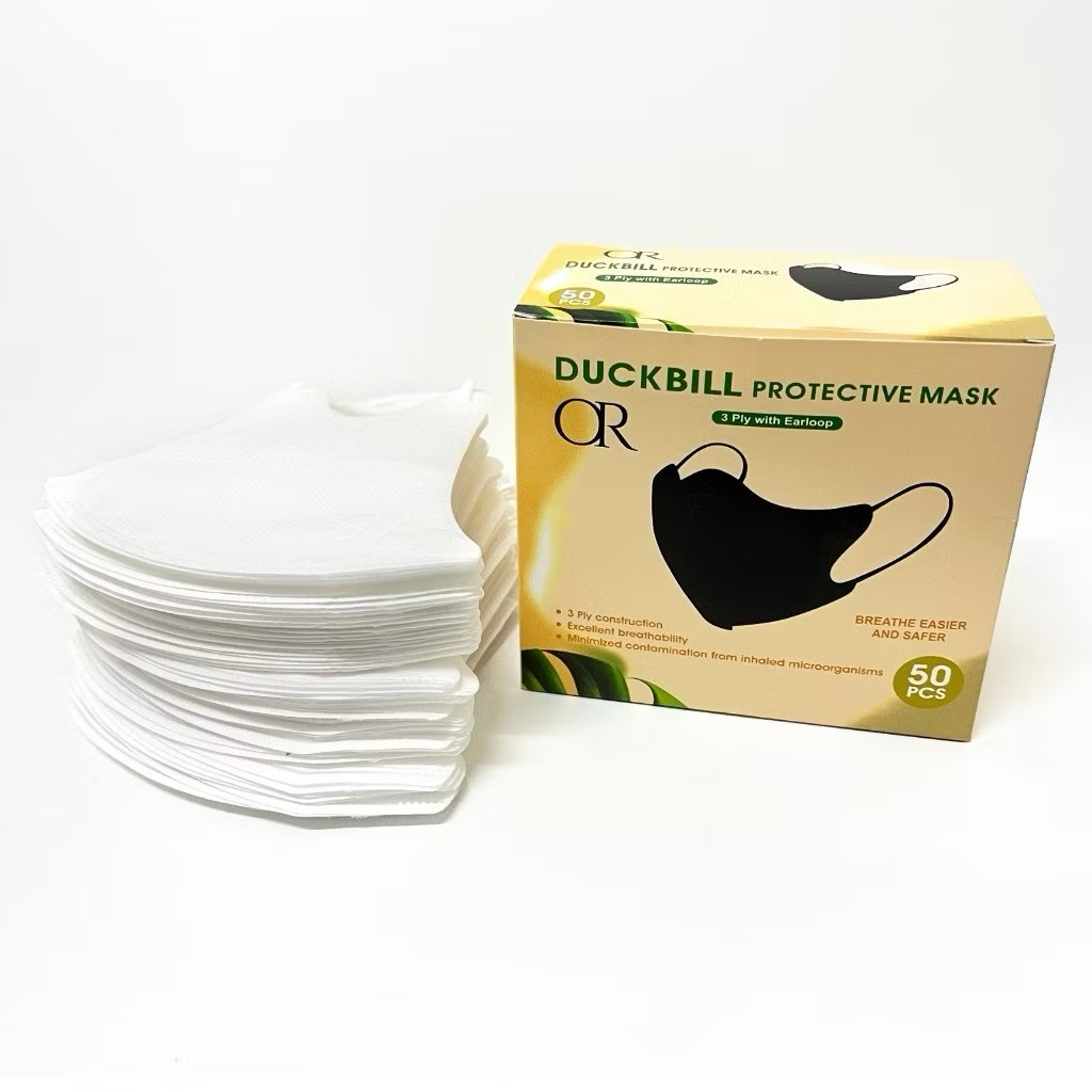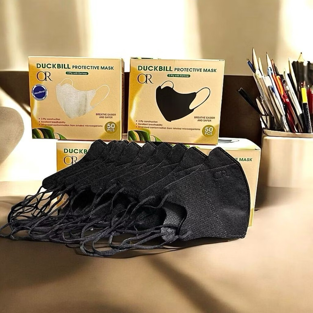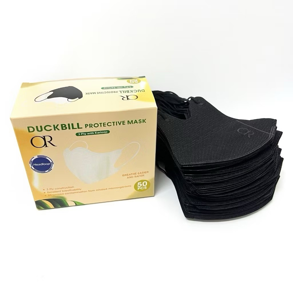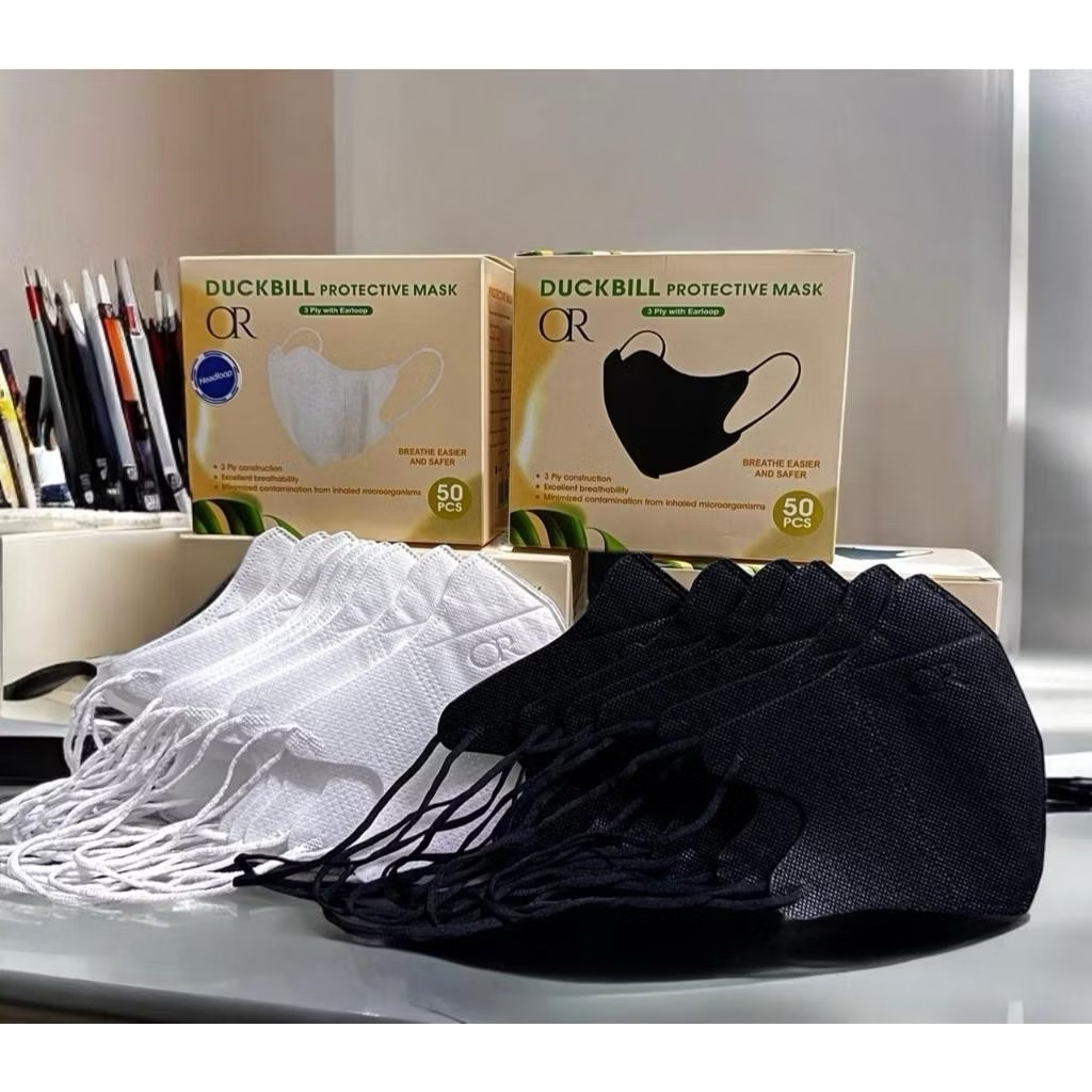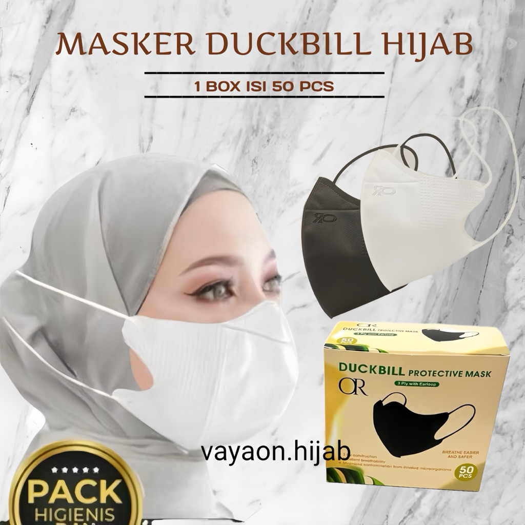 Masker Duckbill Hijab headloop garis 50 Pcs Termurah 1Box Hitam Putih