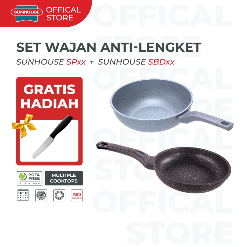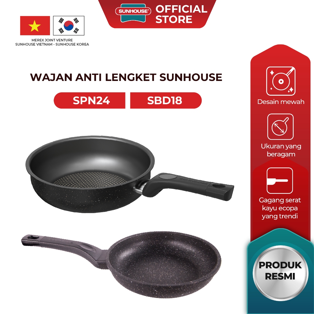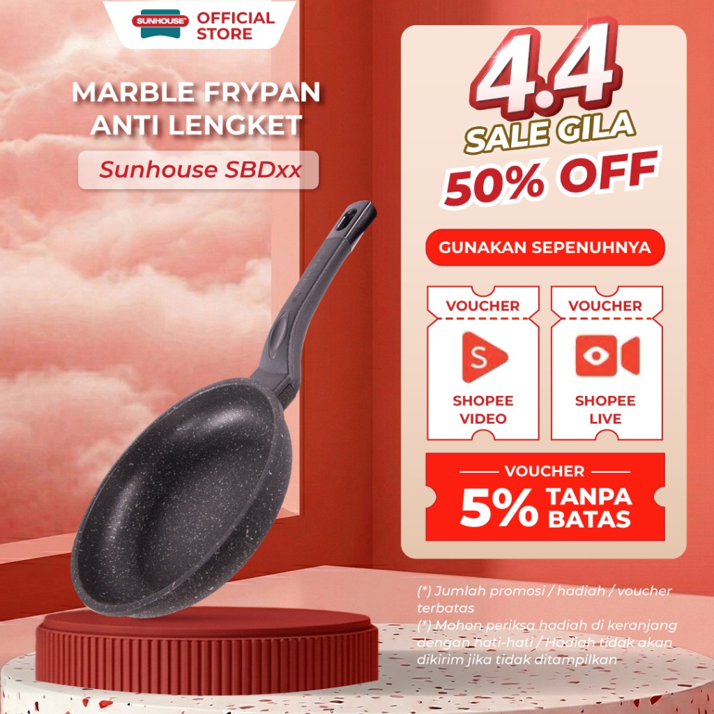 Sunhouse SBD Marble Frypan Anti Lengket 18, 24, 26, 28, 30 cm Hitam 1 Pcs