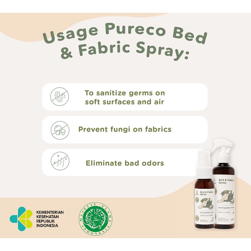 Pureco Bed & Fabric Spray / Spray Kasur Anti Tungau Anti Bakteri 250ml