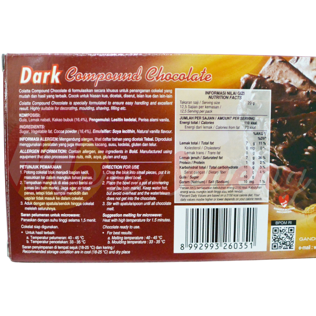 Coklat Blok / Chocolate Block / Coklat Batang / Dark Compound Chocolate Colatta 250 gram