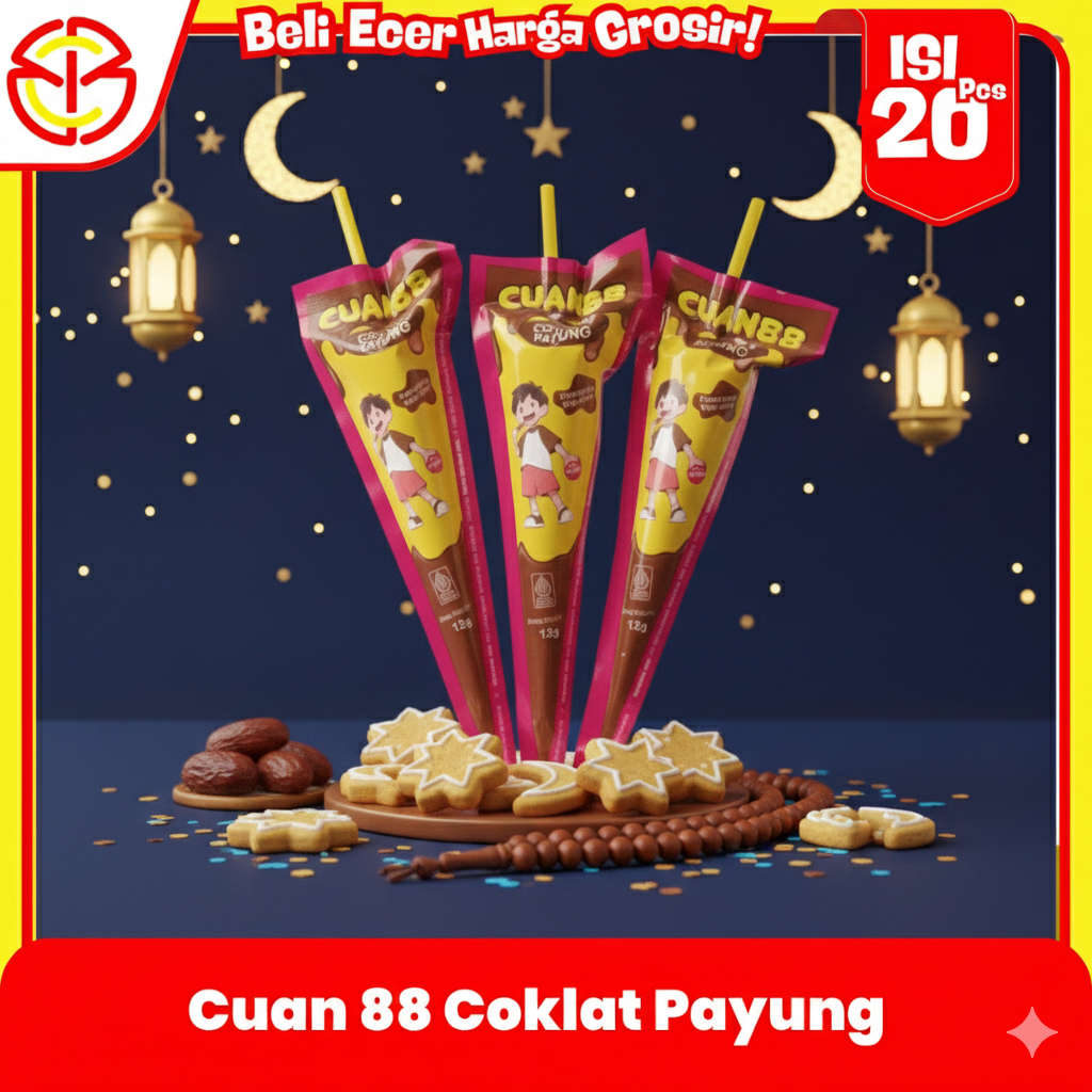 Coklat Payung Cuan 88 Wafer Cone Isi 20pcs Cemilan Manis& Renyah Harga Murah Laris untuk Warung Cuan