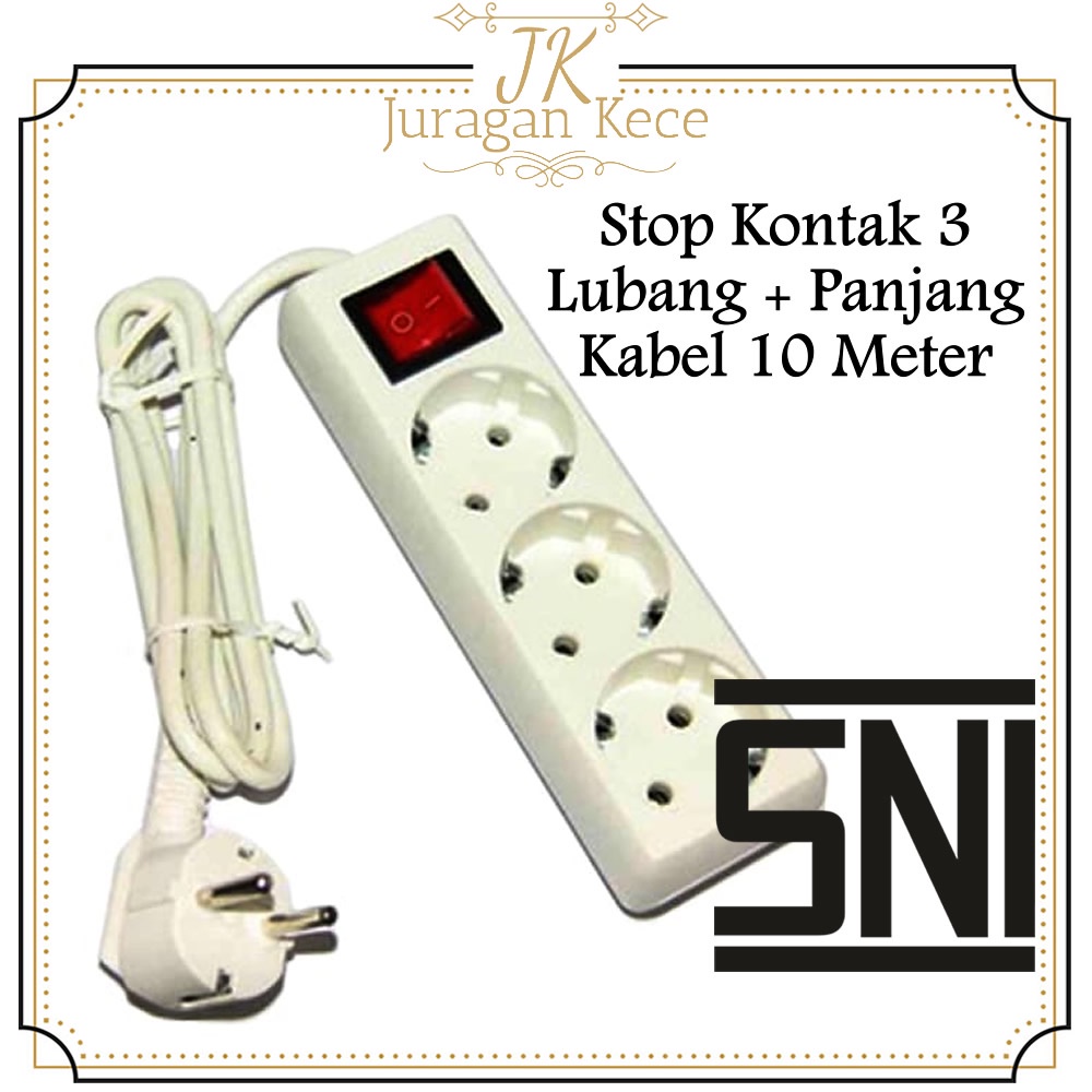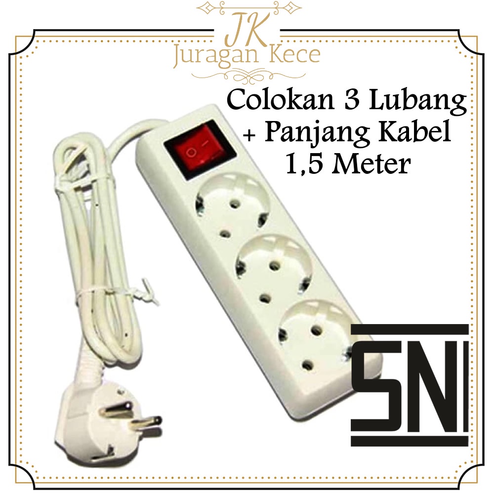 Colokan 3 Lubang Stop Kontak SNI Original Colokan Cok Listrik Panjang Kabel 1,5 Meter / 3 Meter / 5 Meter / 10 Meter