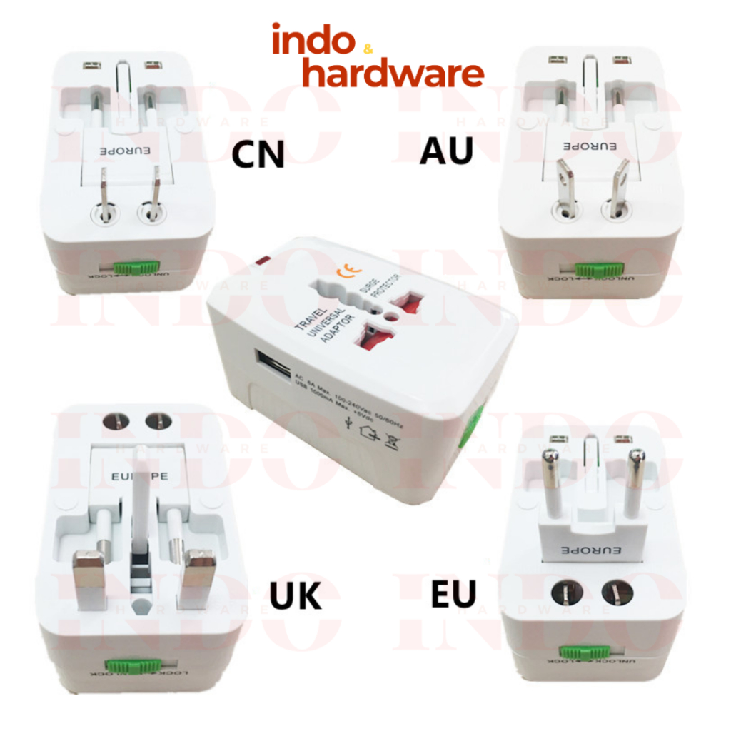 Colokan Listrik Universal Travel Adaptor 4 in 1 | Sambungan Colokan Stop Kontak Steker Listrik Charger Universal Converter Internasional Kaki 3 UK US AU EU CN Plug International Travel Travelling