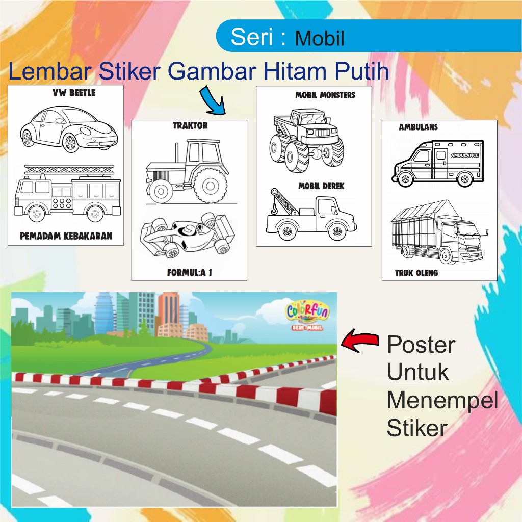 Colorfun Educational Sticker - Mainan Edukasi Anak Belajar Mewarnai Gambar Stiker Tempel A4