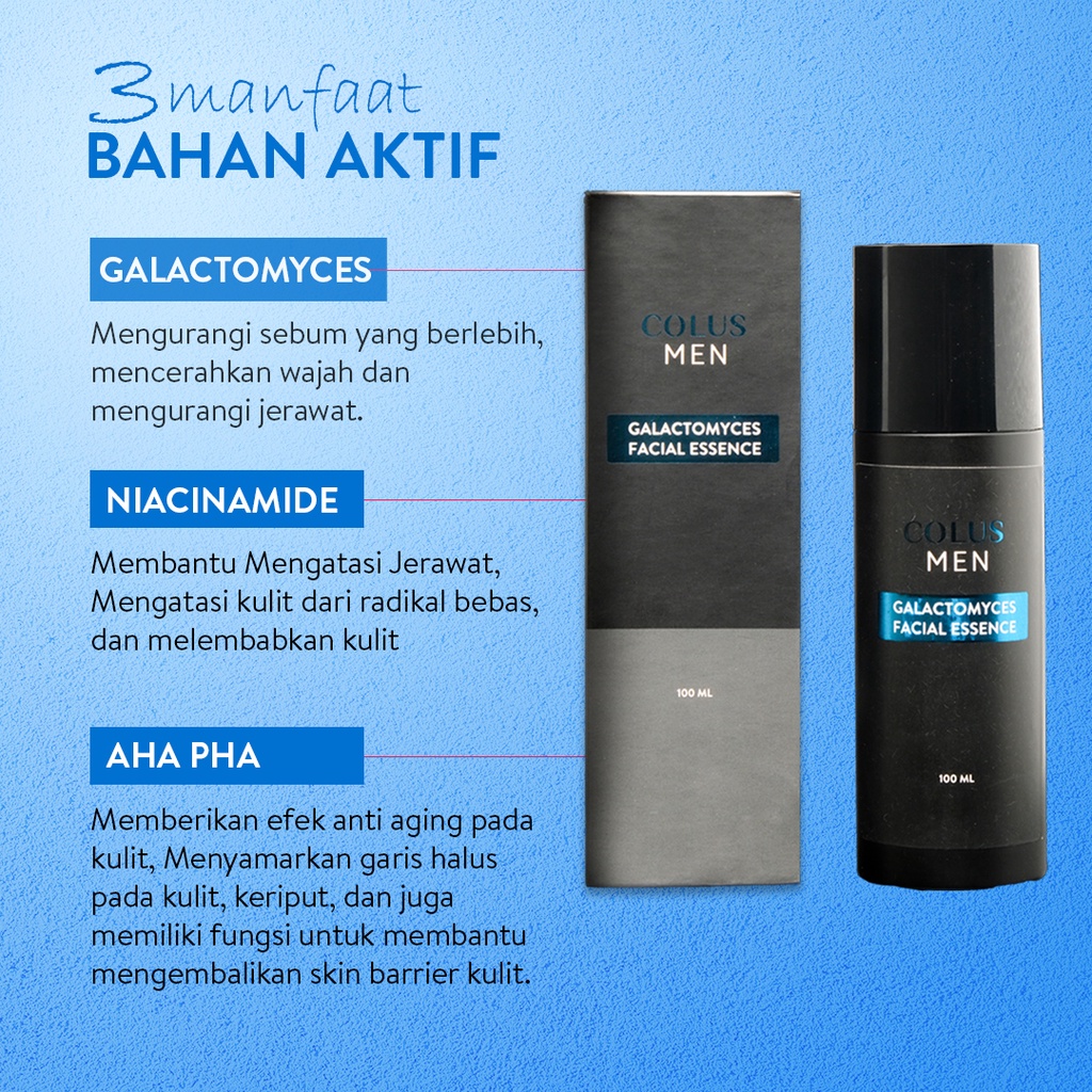 Colus Paket Basic Face Set Collagen - Colus Collagen Salmon DNA + Colus Galactomyces Essence + Colus Men Tri White Booster Night Gel (Free Pouch)