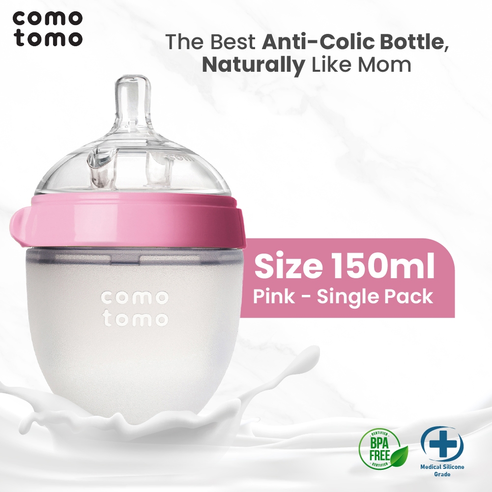 [BEST SELLER] Comotomo 150ml Silicone – Botol Susu Bayi Newborn Anak Silikon Anti Kolik Wide Neck