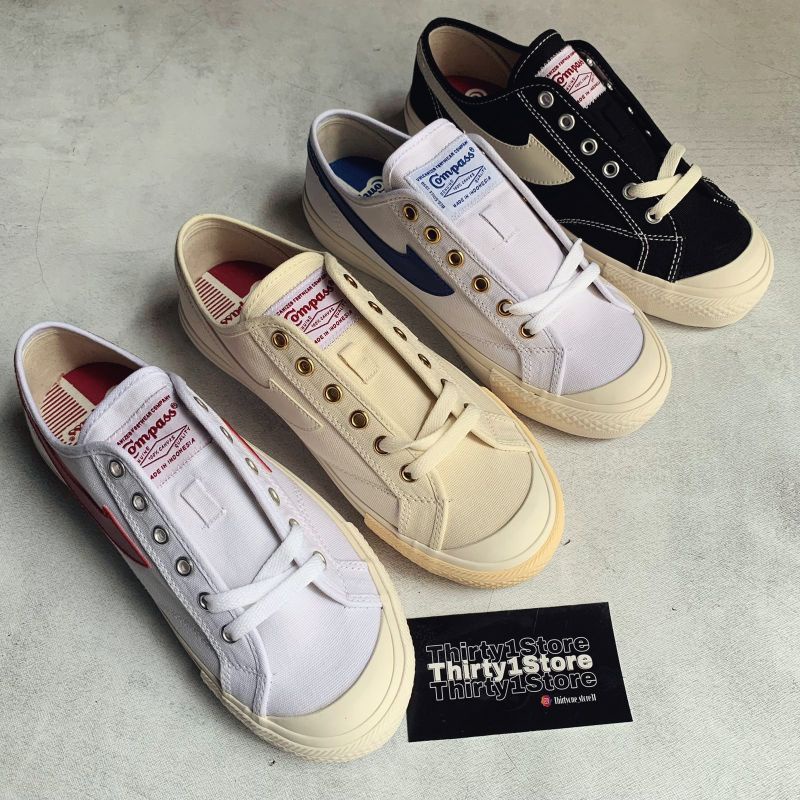 Compass Gazelle Low Black White/Black Gum/White Blue/Cream/White Red | Size 35-45