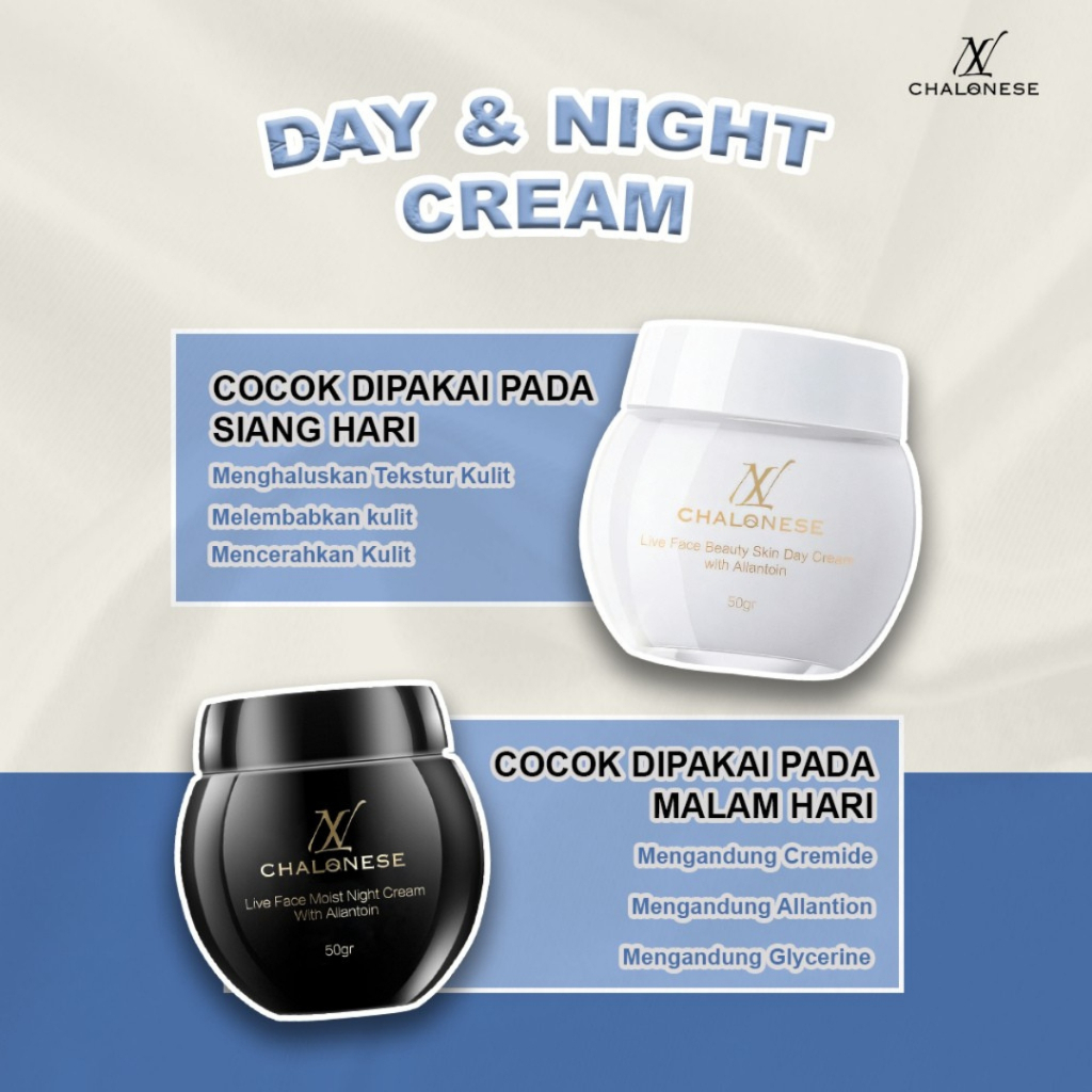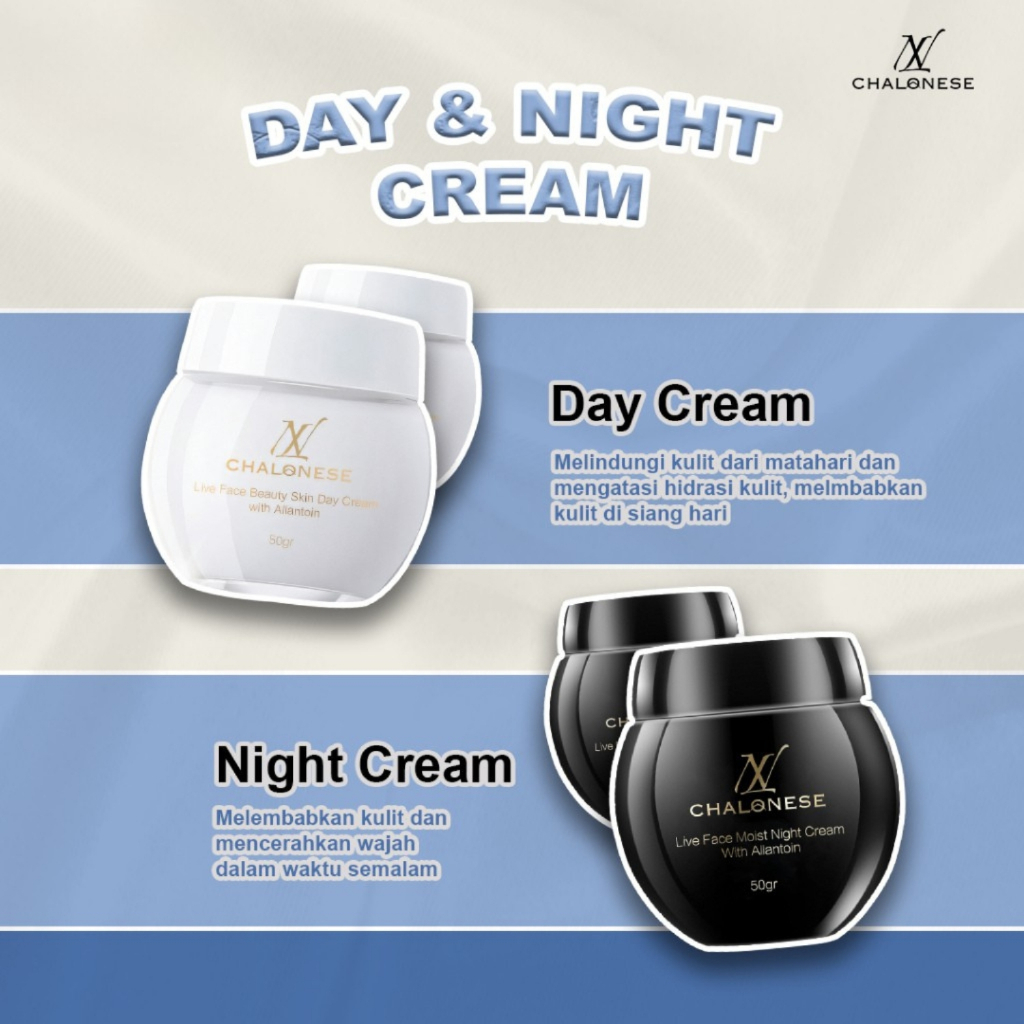 [CHALONESE] COD 1 Set Moisturizer Day And Night Cream 50gr Membantu Merawat Kulit Wajah sehingga Lebih Lembab dan Cerah