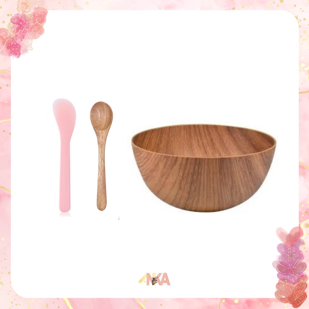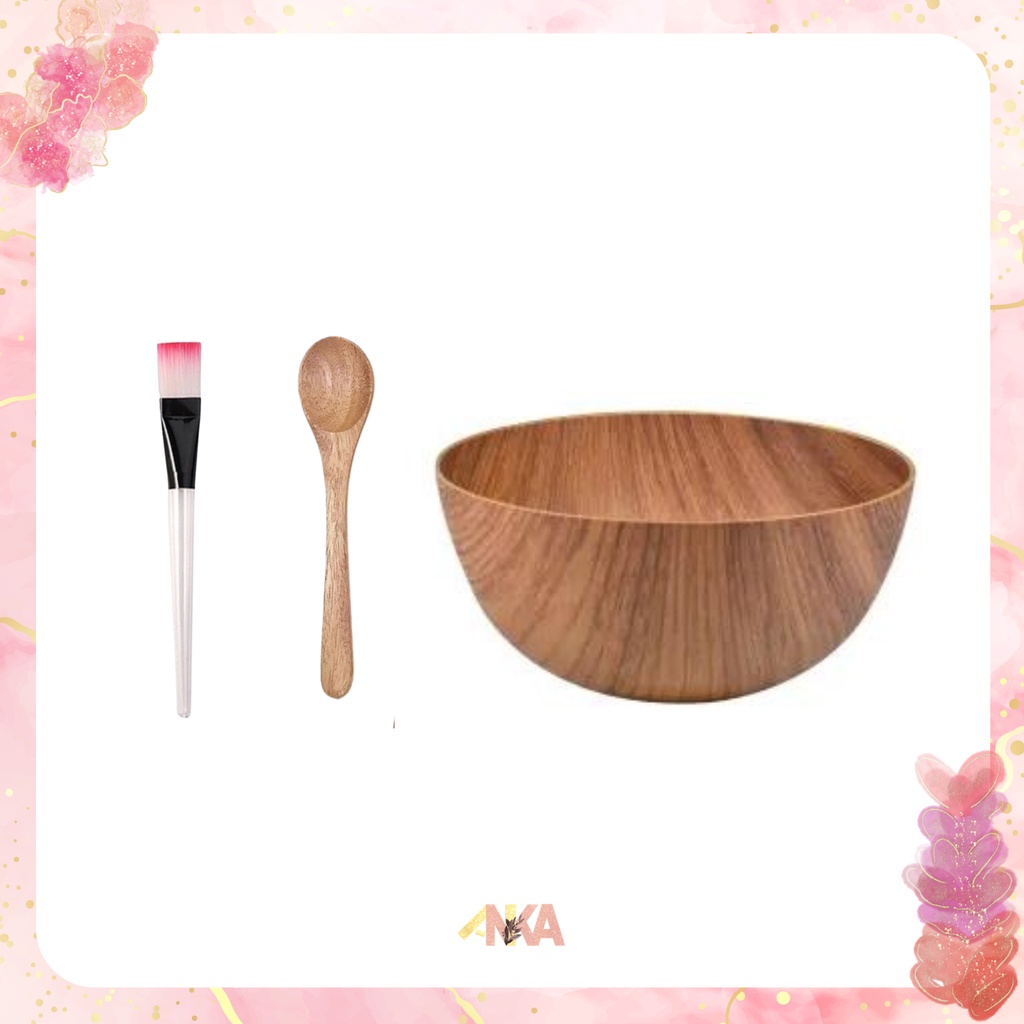 Peralatan Masker Wajah | Mangkuk Kayu | Silikon | Kuas