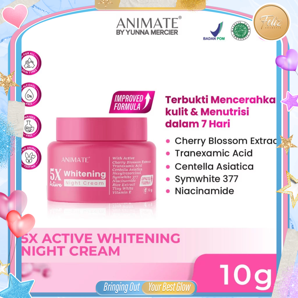 * FELIZ * ANIMATE Whitening Night Cream / Krim Malam