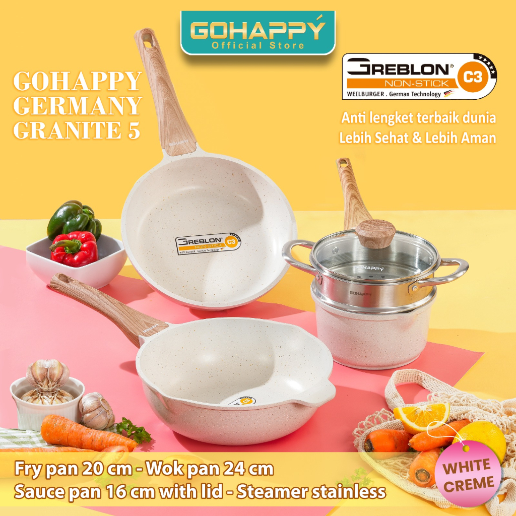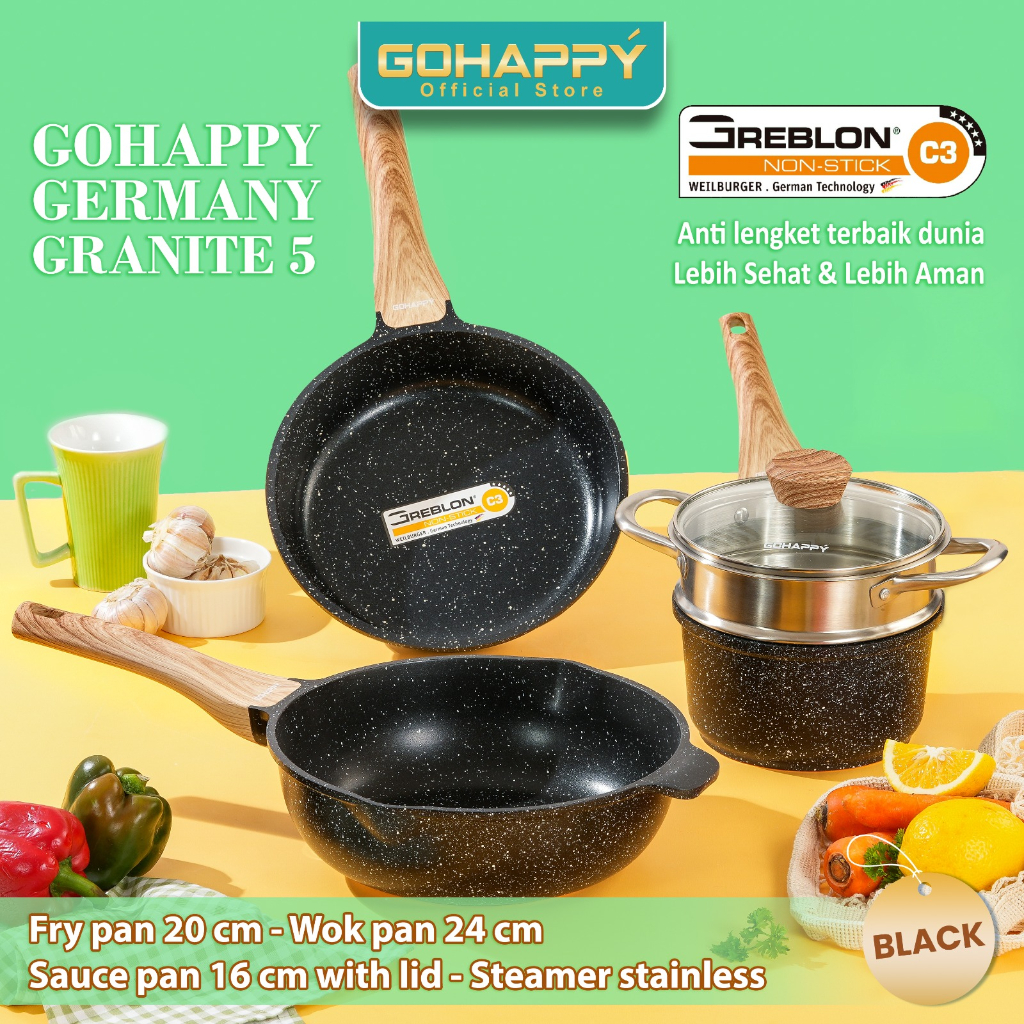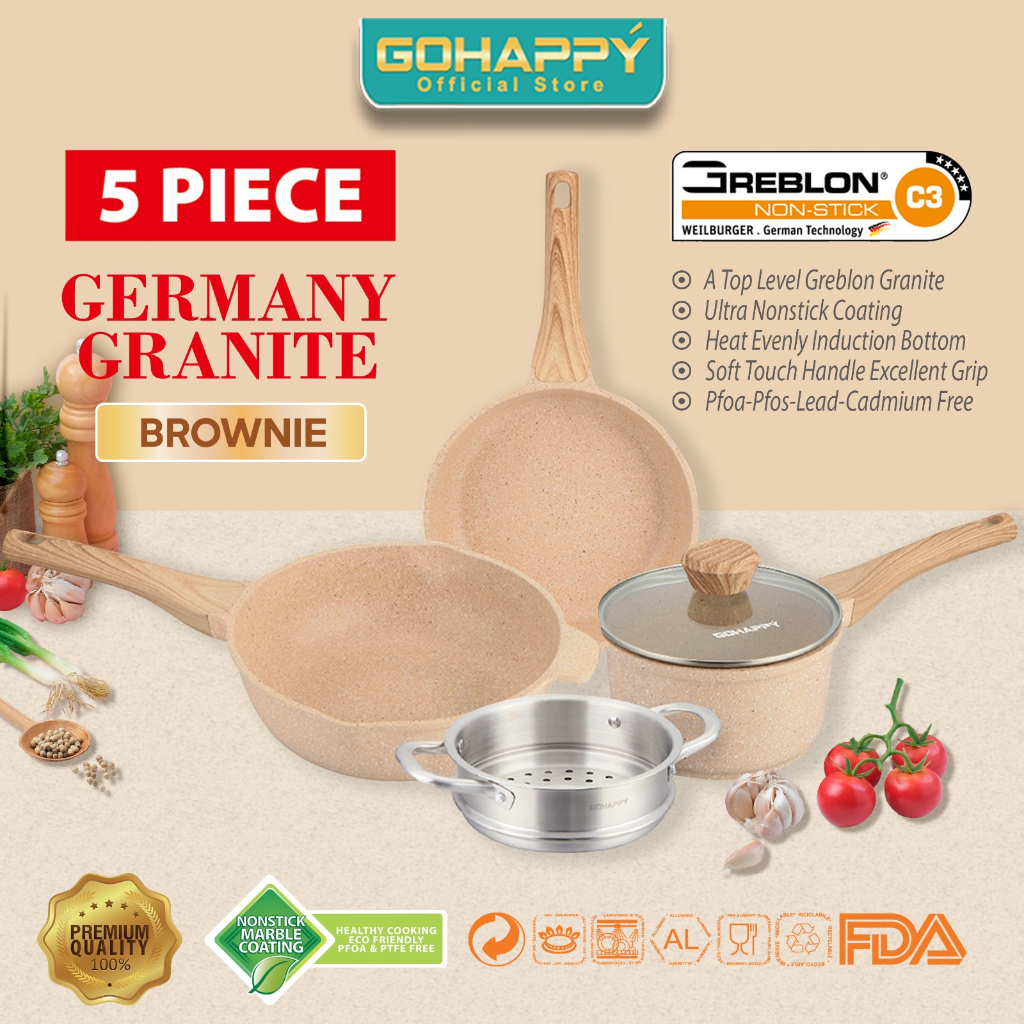 PANCI SET 5 PC GREBLON Gohappy germany granite anti lengket terbaik