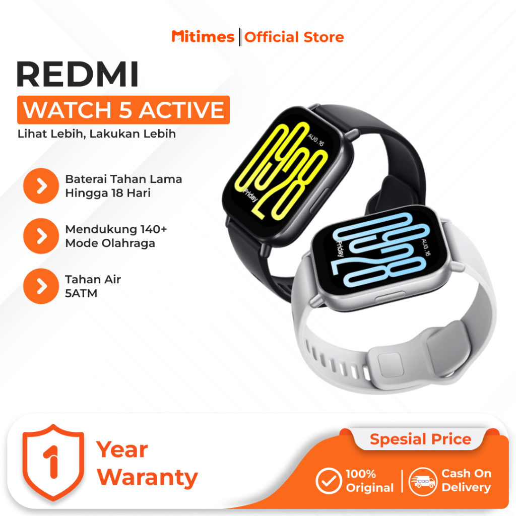 Xiaomi Redmi Watch 5 Active 2.00 Inch Smart Watch140+ Mode Olahraga Tahan Air 5ATM Baterai Tahan 18 Hari