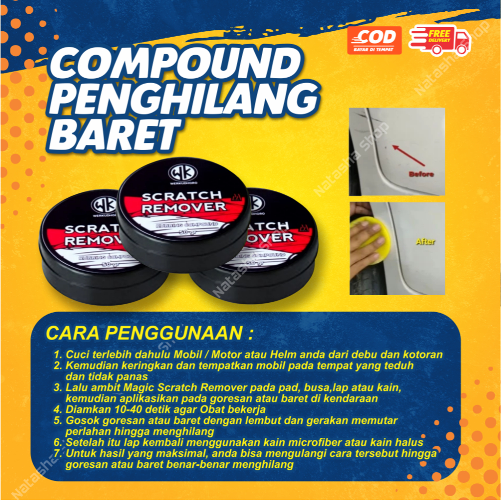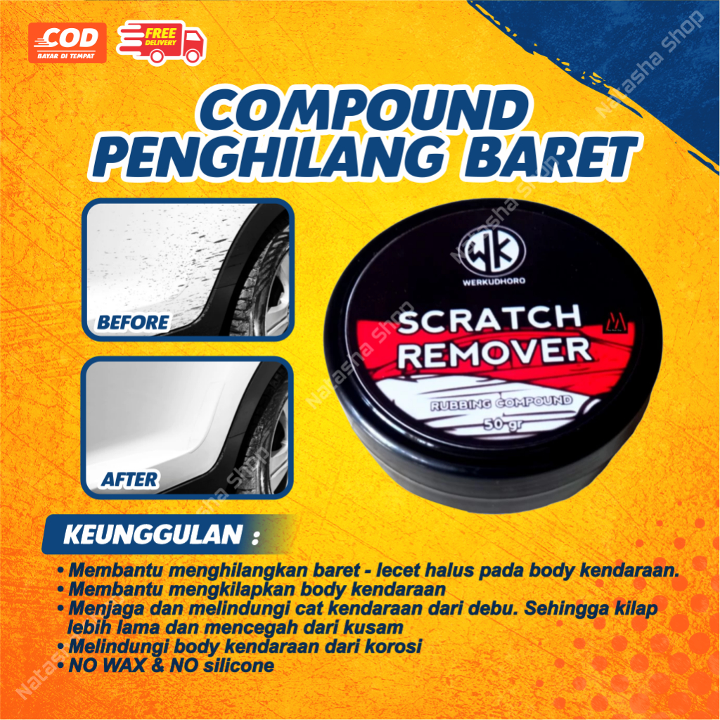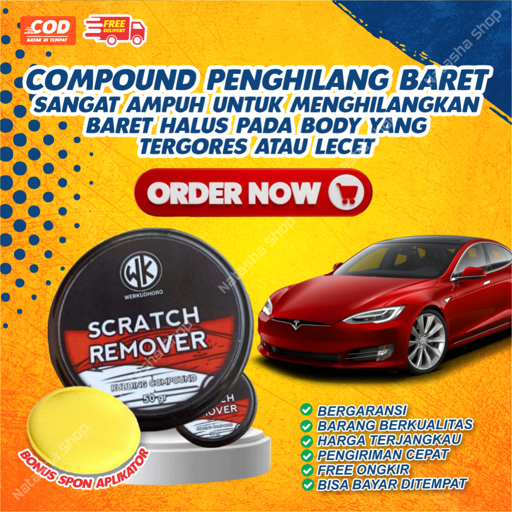 Compound Mobil Penghilang Baret Mobil + Bonus Spon | Scratch Remover Body Mobil, Helm, dan Motor | Isi 50 Gram