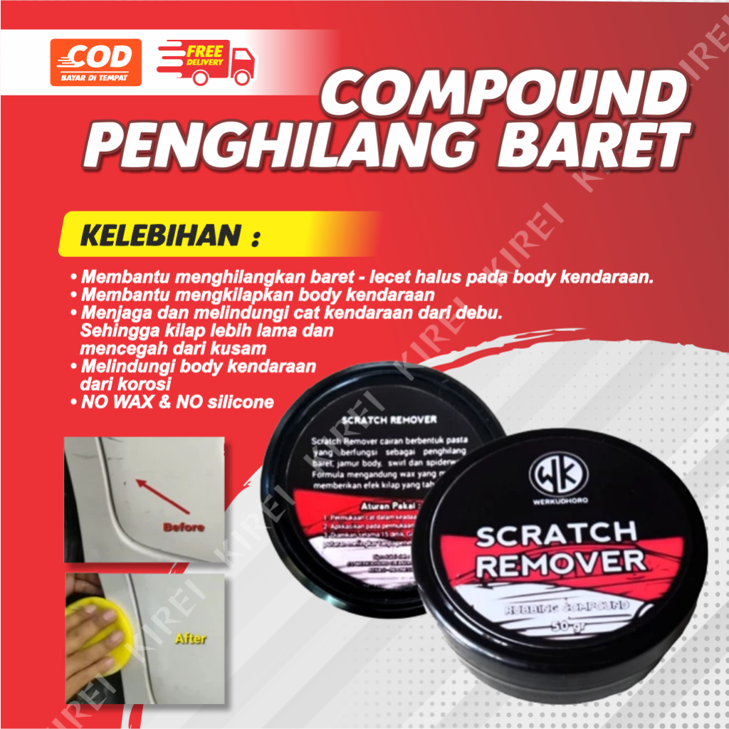 Compound Mobil Penghilang Baret Mobil + Bonus Spon | Scratch Remover Penghilang Baret Ringan Bekas Goresan Body Mobil, Motor dan Helm