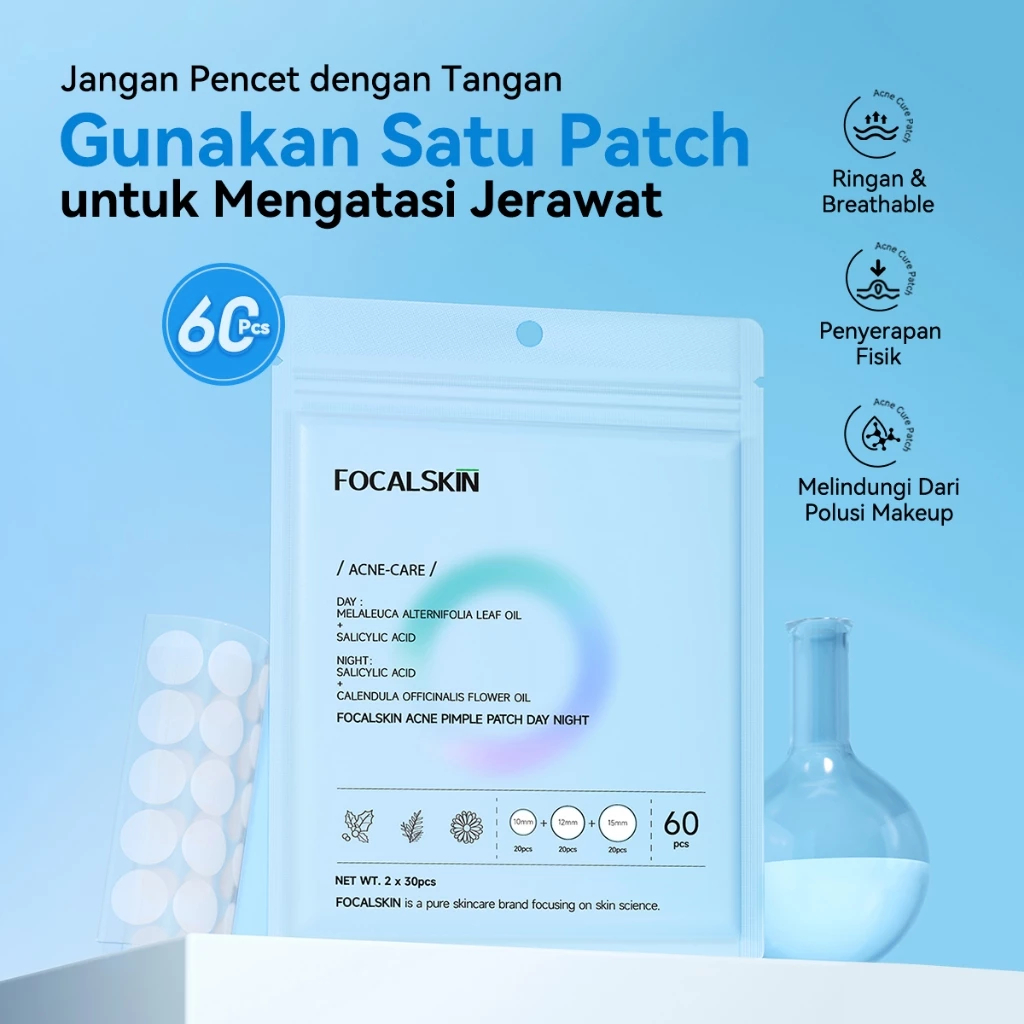 FOCALSKIN Acne Patch Pimple Patch 60PCS (Siang 30pcs & Malam 30pcs) Acne Spot Sticker Sticker Jerawat Tempelan Penutup Jerawat 60 Pcs (Siang 30pcs & Malam 30pcs)