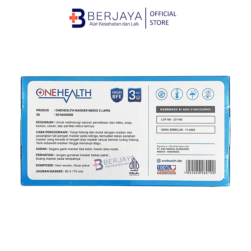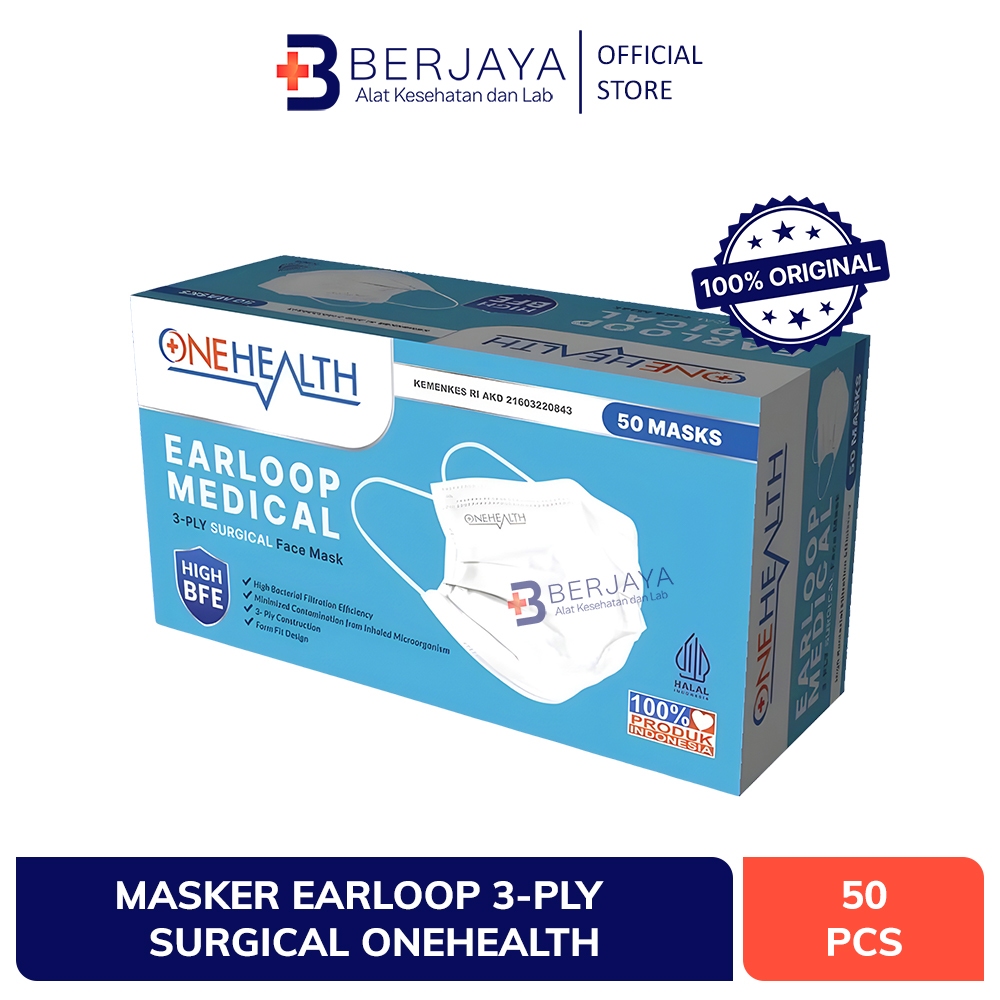 Medical Face Mask / Masker Medis Earloop 3 Ply Onehealth isi 50 pcs