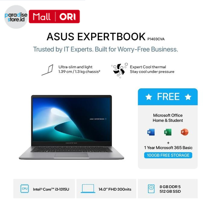 ASUS ExpertBook P1403CVA-S63850WS Intel Core i3-1315U / Intel UHD Graphics / 8GB / 512GB / 14inch / WIN11 / OHS24 / M365 - Misty Grey - Grey