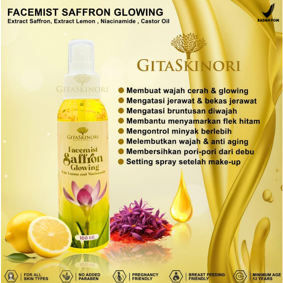 NEW FACE MIST SAFFRON 100 ml WITH LEMON PLUS VIT E NIACINAMIDE