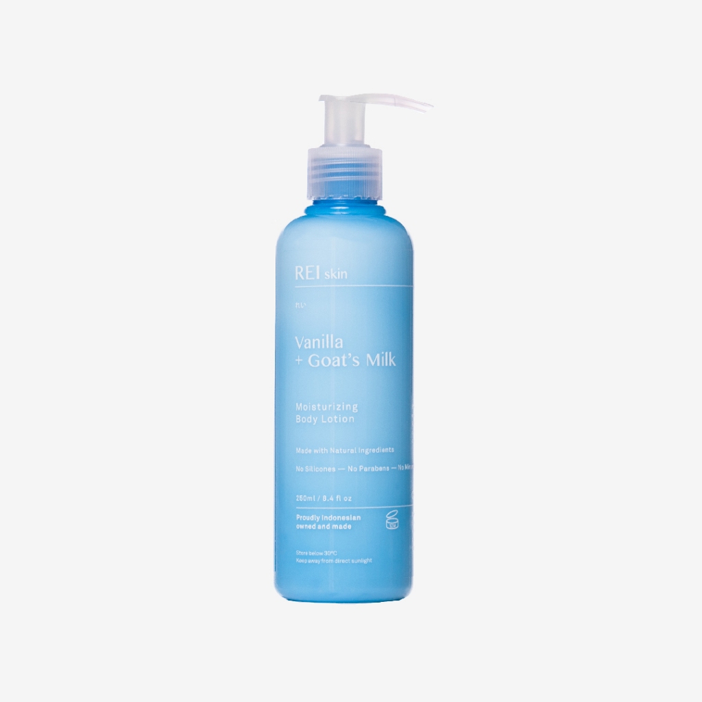REI Skin Vanilla + Goat's Milk Moisturizing Body Lotion 250 ml | No Steroid No Fragrance | Lotion Badan Melembabkan Kulit Kering Sensitif