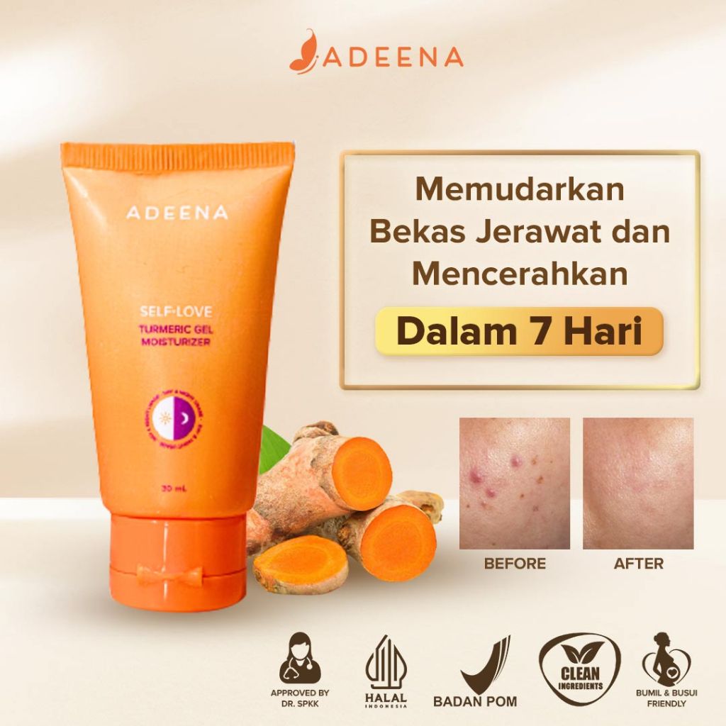 Gel Moisturizer Adeena Travel Size | Anti Dekil, Lembap Seharian | Turmeric + Hyaluronic Acid
